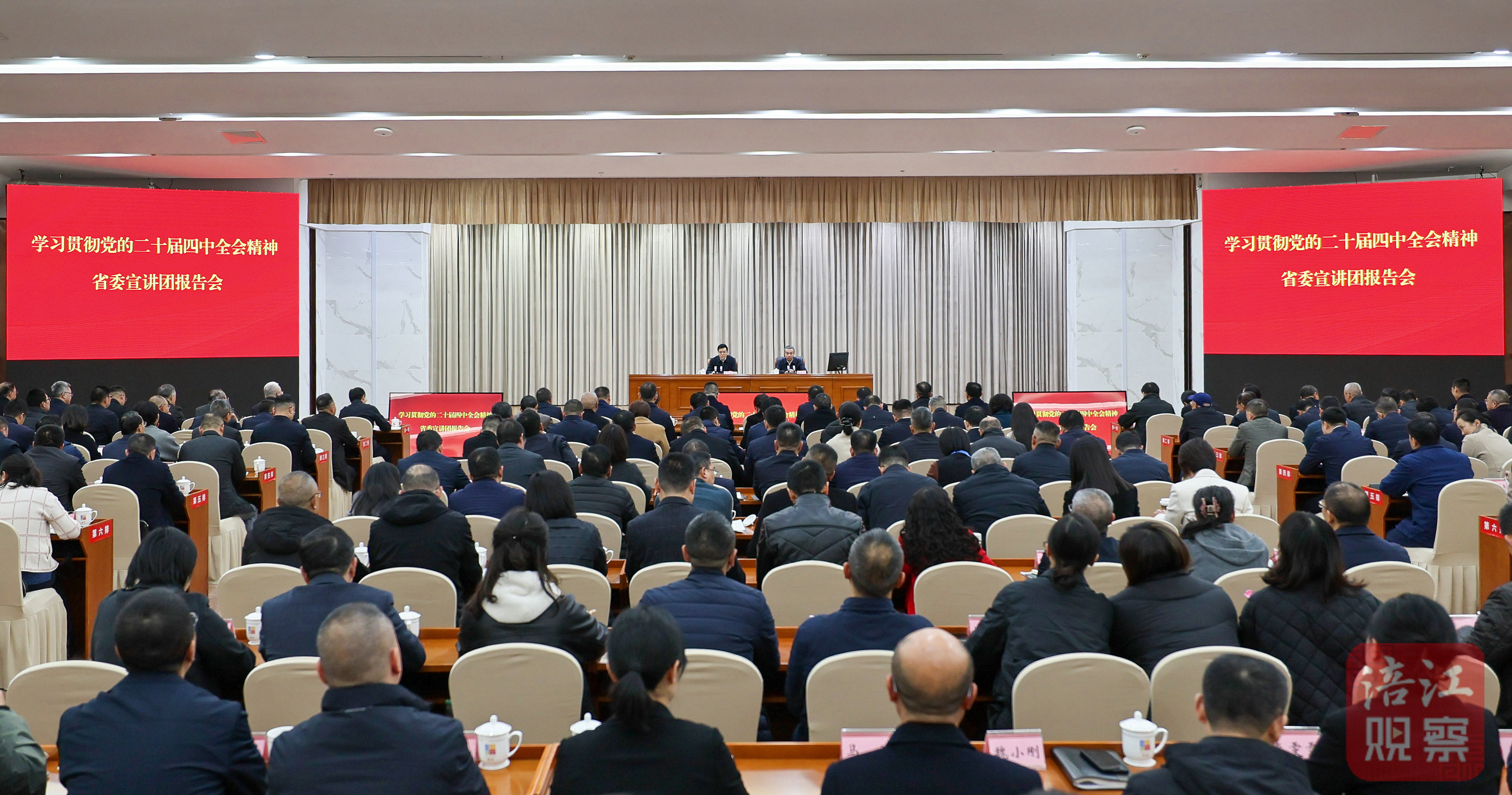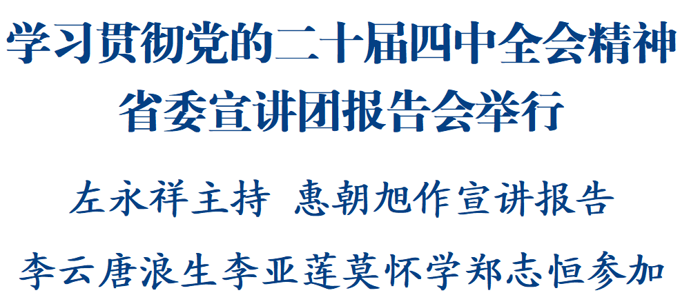 報(bào)告會(huì)上,惠朝旭圍繞習(xí)近平總書(shū)記在黨的二十屆四中全會(huì)上的重要講話和《中共中央關(guān)于制定國(guó)民經(jīng)濟(jì)和社會(huì)發(fā)展第十五個(gè)五年規(guī)劃的建議》,對(duì)“十四五”時(shí)期我國(guó)發(fā)展取得的重大成就,“十五五”時(shí)期經(jīng)濟(jì)社會(huì)發(fā)展的重大意義、指導(dǎo)方針、主要目標(biāo)、戰(zhàn)略任務(wù)、重大舉措以及根本保證進(jìn)行了全面宣講和系統(tǒng)闡釋。惠朝旭表示,黨的二十屆四中全會(huì)是在我國(guó)即將進(jìn)入基本實(shí)現(xiàn)社會(huì)主義現(xiàn)代化夯實(shí)基礎(chǔ)、全面發(fā)力的關(guān)鍵時(shí)期,召開(kāi)的一次十分重要的會(huì)議。全會(huì)取得重大成果、作出重大部署,是乘勢(shì)而上、接續(xù)推進(jìn)中國(guó)式現(xiàn)代化建設(shè)的又一次總動(dòng)員、總部署,充分體現(xiàn)了以習(xí)近平同志為核心的黨中央團(tuán)結(jié)帶領(lǐng)全黨全國(guó)各族人民續(xù)寫(xiě)經(jīng)濟(jì)快速發(fā)展和社會(huì)長(zhǎng)期穩(wěn)定兩大奇跡新篇章、奮力開(kāi)創(chuàng)中國(guó)式現(xiàn)代化建設(shè)新局面的歷史主動(dòng)。他強(qiáng)調(diào),要把學(xué)習(xí)貫徹黨的二十屆四中全會(huì)精神同學(xué)習(xí)領(lǐng)會(huì)習(xí)近平新時(shí)代中國(guó)特色社會(huì)主義思想和習(xí)近平總書(shū)記對(duì)四川工作系列重要指示精神貫通起來(lái),與學(xué)習(xí)貫徹省委十二屆八次全會(huì)精神結(jié)合起來(lái),在對(duì)標(biāo)對(duì)表中結(jié)合本地實(shí)際謀劃好未來(lái)五年發(fā)展藍(lán)圖。