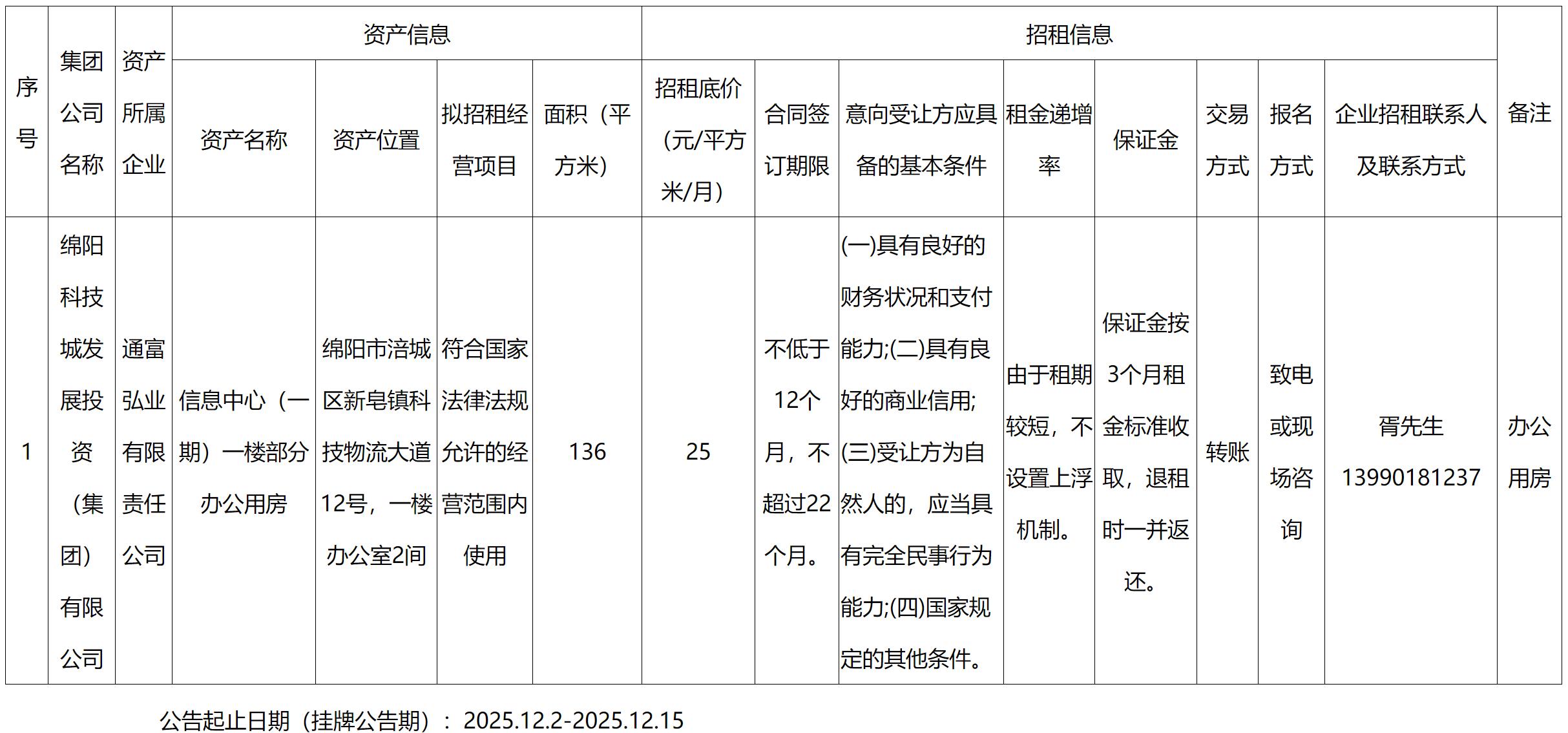 通富弘業(yè)有限責(zé)任公司資產(chǎn)出租公告