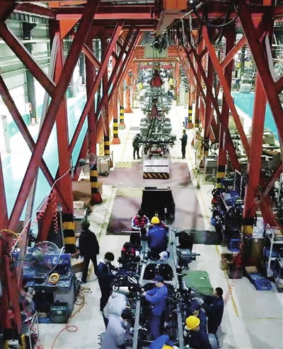 日前,在江油高新區(qū)的四川陸亨能源科技有限公司生產(chǎn)車間內(nèi),焊工正通過智能焊接機械臂對受熱面管束進行拼接。 記者 陳元松 攝