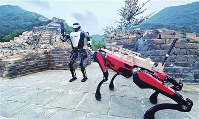 2024年8月23日,“綿陽造”人形機器人夸父-MY、四足仿生機器狗登上長城。視覺綿陽資料圖片