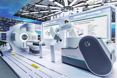 第十三屆科博會上,長虹展區(qū)展出的e-Flash放射治療設(shè)備和X-Flash放射治療設(shè)備。視覺綿陽資料圖片