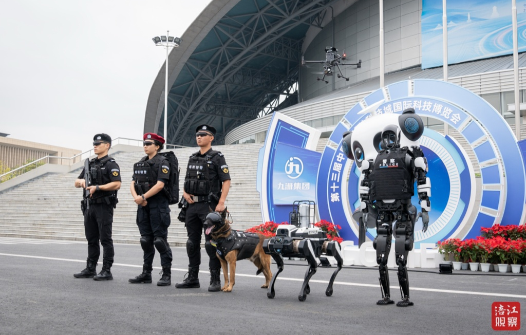 第十三屆科博會,安保警力協(xié)同警用機器狗、人形機器人等智能裝備“上崗執(zhí)勤”。視覺綿陽資料圖