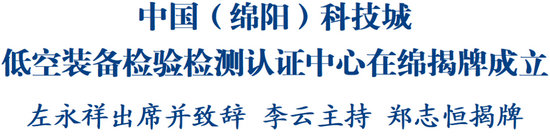 綿陽新聞網(wǎng)訊 12月12日,中國(綿陽)科技城低空裝備檢驗檢測認(rèn)證中心在綿揭牌成立。省委常委、市委書記左永祥出席并致辭。市委副書記、市長李云主持,市委常委、科技城管委會主任鄭志恒出席并揭牌。