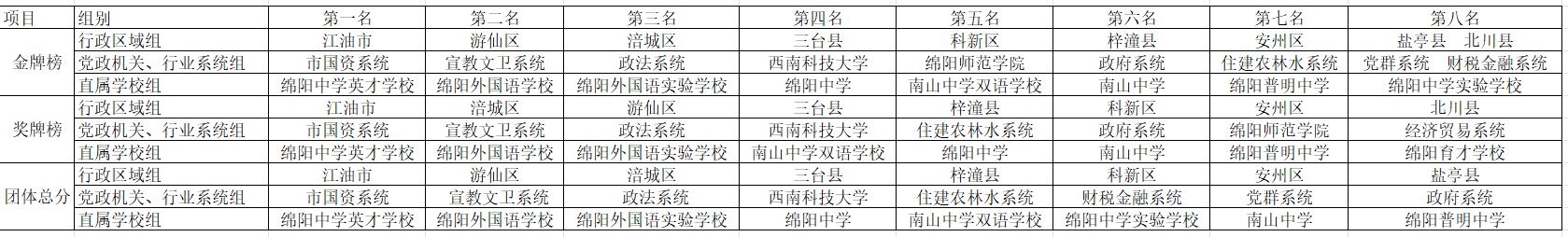 其中,江油市、綿陽市國資系統(tǒng)、綿陽中學英才學校成績亮眼,包攬各組別金牌榜、獎牌榜、團體總分三項第一名。