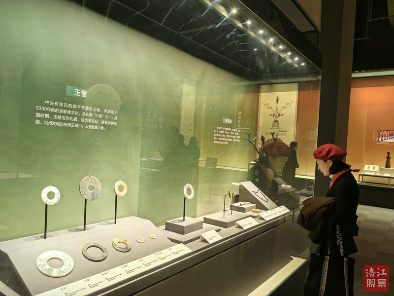 當(dāng)天上午,在楚風(fēng)楚韻的音樂聲中,媒體代表和游客有序進(jìn)入展廳,236件(套)精品文物靜靜陳列。從青銅器的莊重威嚴(yán)到玉器的溫潤(rùn)典雅,從漆木器的絢麗多彩到竹簡(jiǎn)典籍的深邃智慧,每一件展品都承載著楚地先民的智慧與生活印記。