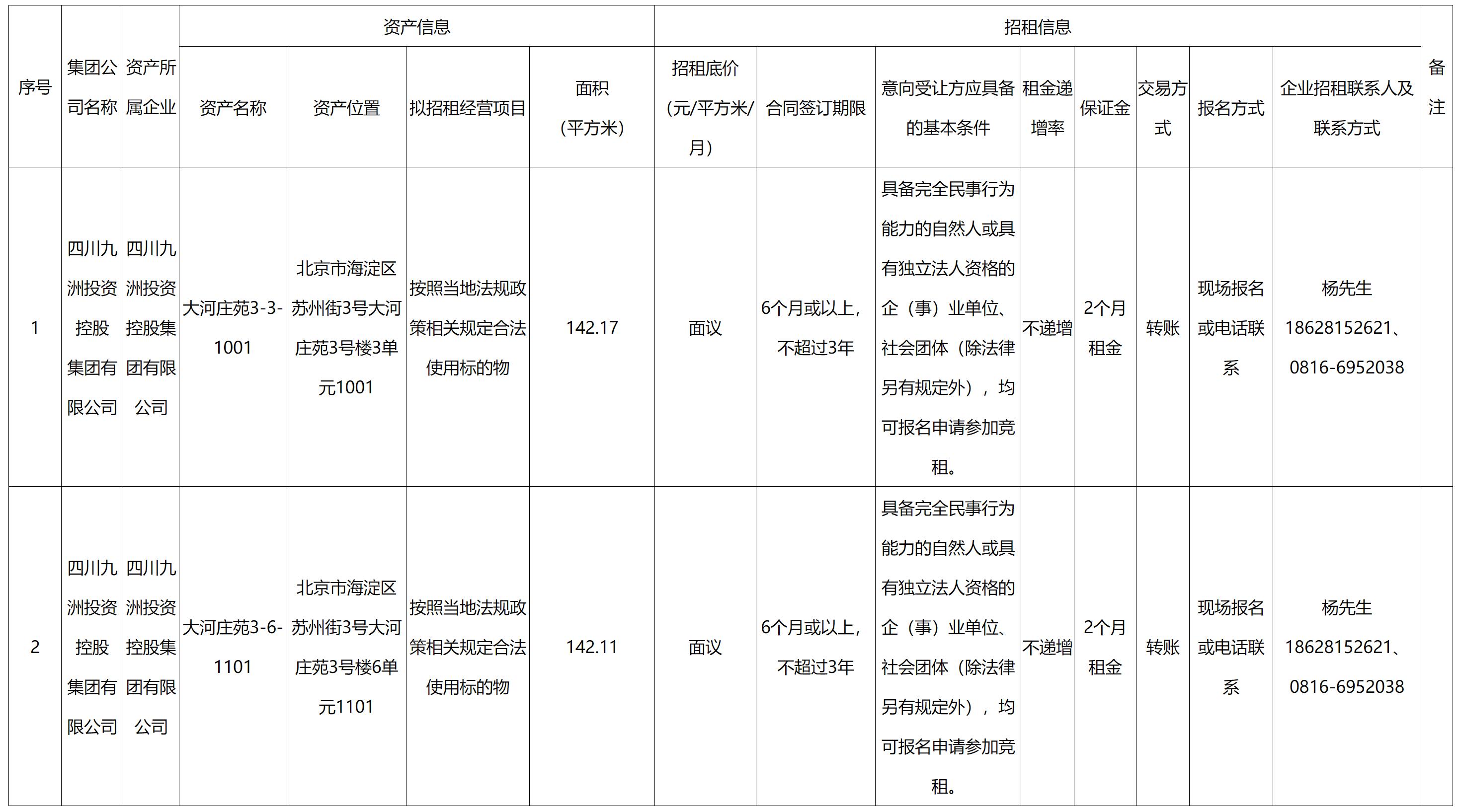 四川九洲千城商業(yè)管理有限公司北京項(xiàng)目部大河莊苑房屋出租公告