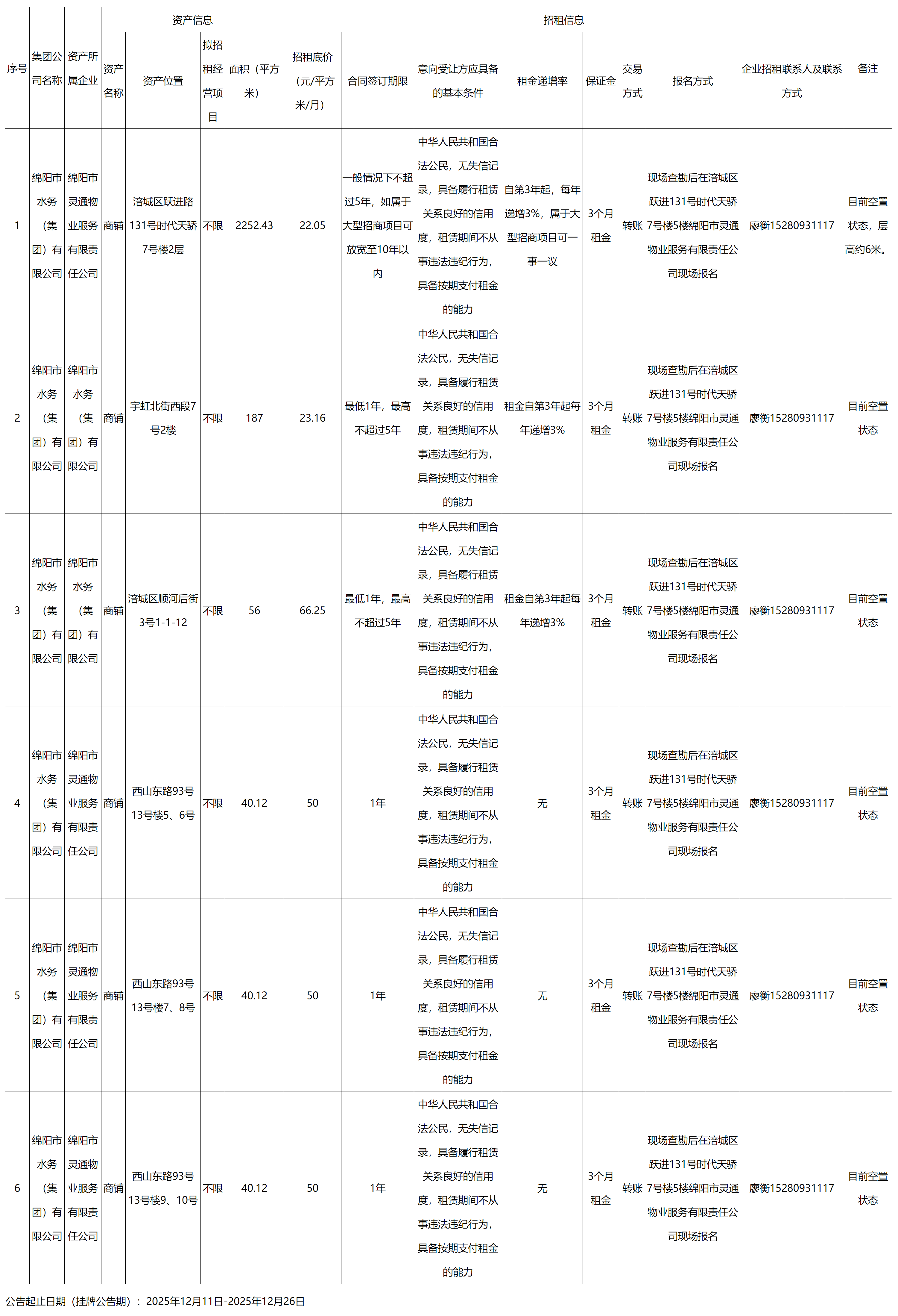 綿陽市水務(wù)(集團)有限公司資產(chǎn)出租公告