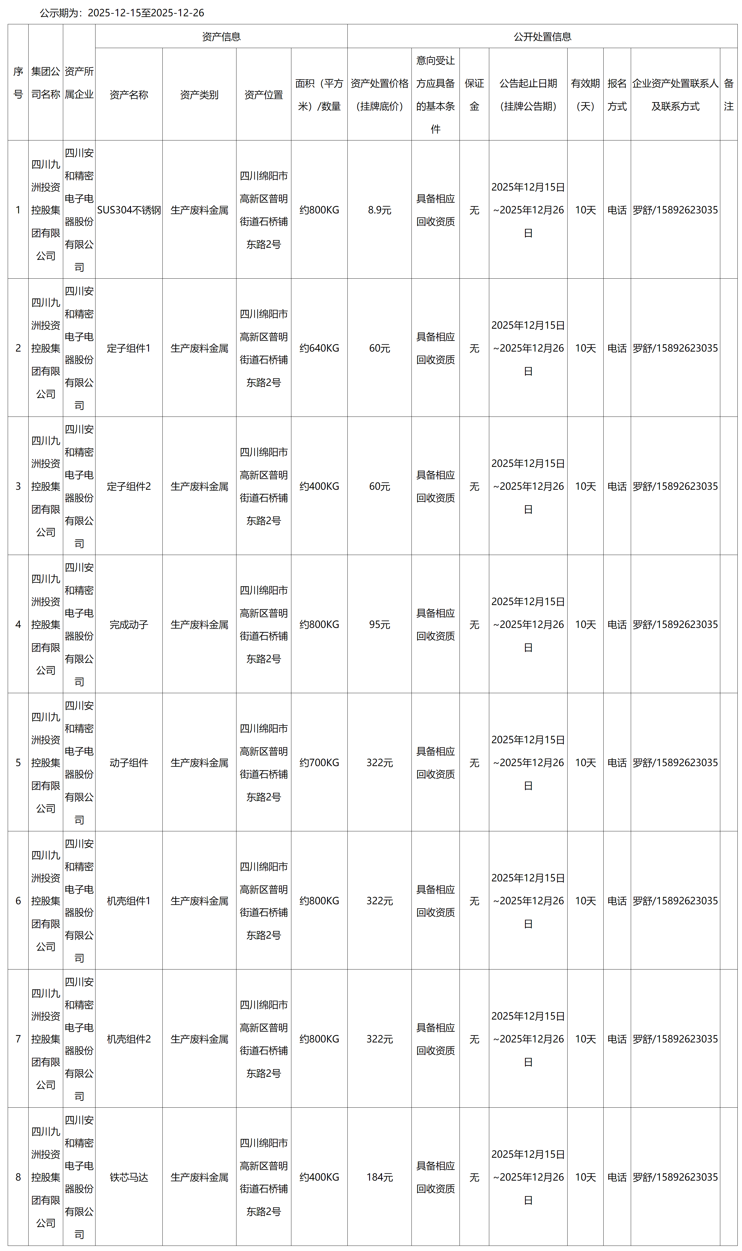 四川安和精密電子電器股份有限公司資產處置公告