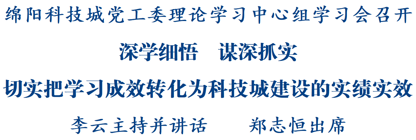綿陽新聞網(wǎng)訊 12月16日,綿陽科技城黨工委理論學習中心組學習會召開,集中學習黨的二十屆四中全會、省委十二屆八次全會和市委八屆十一次全會精神。市委副書記、市長、科技城黨工委書記李云主持并講話。