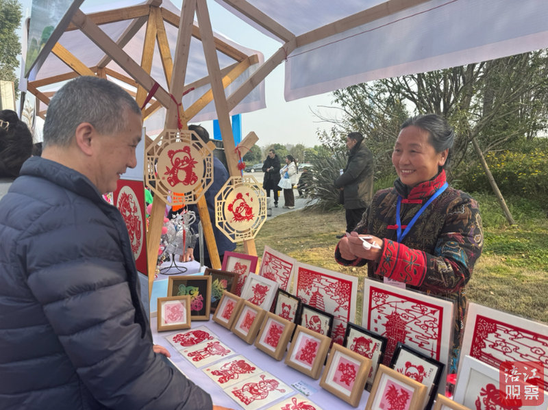 啟動儀式外,鄉(xiāng)村旅游嘉年華體驗區(qū)人頭攢動。剪紙攤前,一襲傳統(tǒng)服飾的女士靜守著滿架紅艷,風來,剪紙上的熊貓、人物悄然輕曳,游客舉起“熊貓抱竹”,笑嘆“比照片鮮活多了”;葫蘆攤前,一位男士摩挲著刻有“錦繡天府”的大葫蘆,“烙畫、漆藝”橫幅下,木雕師傅正打磨“綠繞天府”主題木雕。