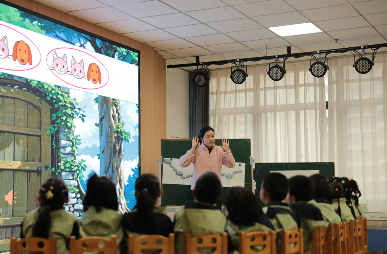 活動中,七位教師立足幼兒年齡特點與發(fā)展需要,巧妙設計,精心組織。課程內(nèi)容涵蓋語言、科學、藝術(shù)、健康等多個領域,充分體現(xiàn)了“以幼兒為本”的教育理念。教師們嫻熟運用多媒體技術(shù)及多樣化教具,創(chuàng)設生動有趣的情境,通過游戲化、探究式的教學方式,激發(fā)幼兒主動參與和深度思考。如《尋找消失的寶石王冠》數(shù)學活動,引導幼兒在闖關游戲中輕松掌握數(shù)學邏輯,體驗運用模式解決游戲問題的樂趣;《測量小偵探》科學探索,讓幼兒用身邊的自然物探索測量方法,在動手操作中掌握首尾相接的測量方法,建立“量”的概念。