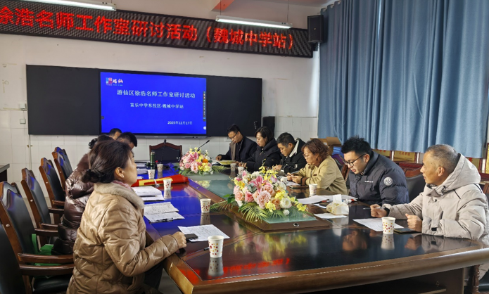 同時,游仙區(qū)徐浩名師工作室初中數(shù)學(xué)專題研討活動也在該校順利開展。工作室全體成員、游仙區(qū)各初中數(shù)學(xué)骨干教師齊聚一堂,圍繞“深度學(xué)習(xí)視角下的初中數(shù)學(xué)課堂教學(xué)設(shè)計”展開深入交流與探討。