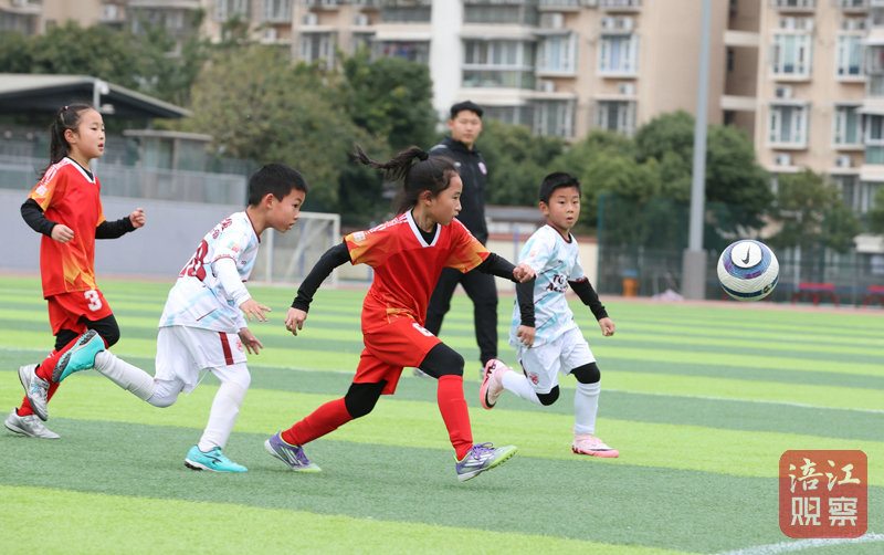 比賽一開始,江油女足的小隊員們便開始展現(xiàn)出較為嫻熟的足球技巧,他們在五人制足球場上與同年齡段的男孩們奮力爭搶。別看孩子們小小的個子,面對雙語學校的男隊員,這些女孩一點也不膽怯,總是想方設法突破對方防守。對方有好幾次射門,大都被江油女足隊員防守成功,守門員也勇敢地奪下了幾次射門。雙方在球場上你拼我搶,幾乎可以說勢均力敵??偟膩砜?,這些小球員們的傳球、停球、射門技巧已經(jīng)有了較好的表現(xiàn)。