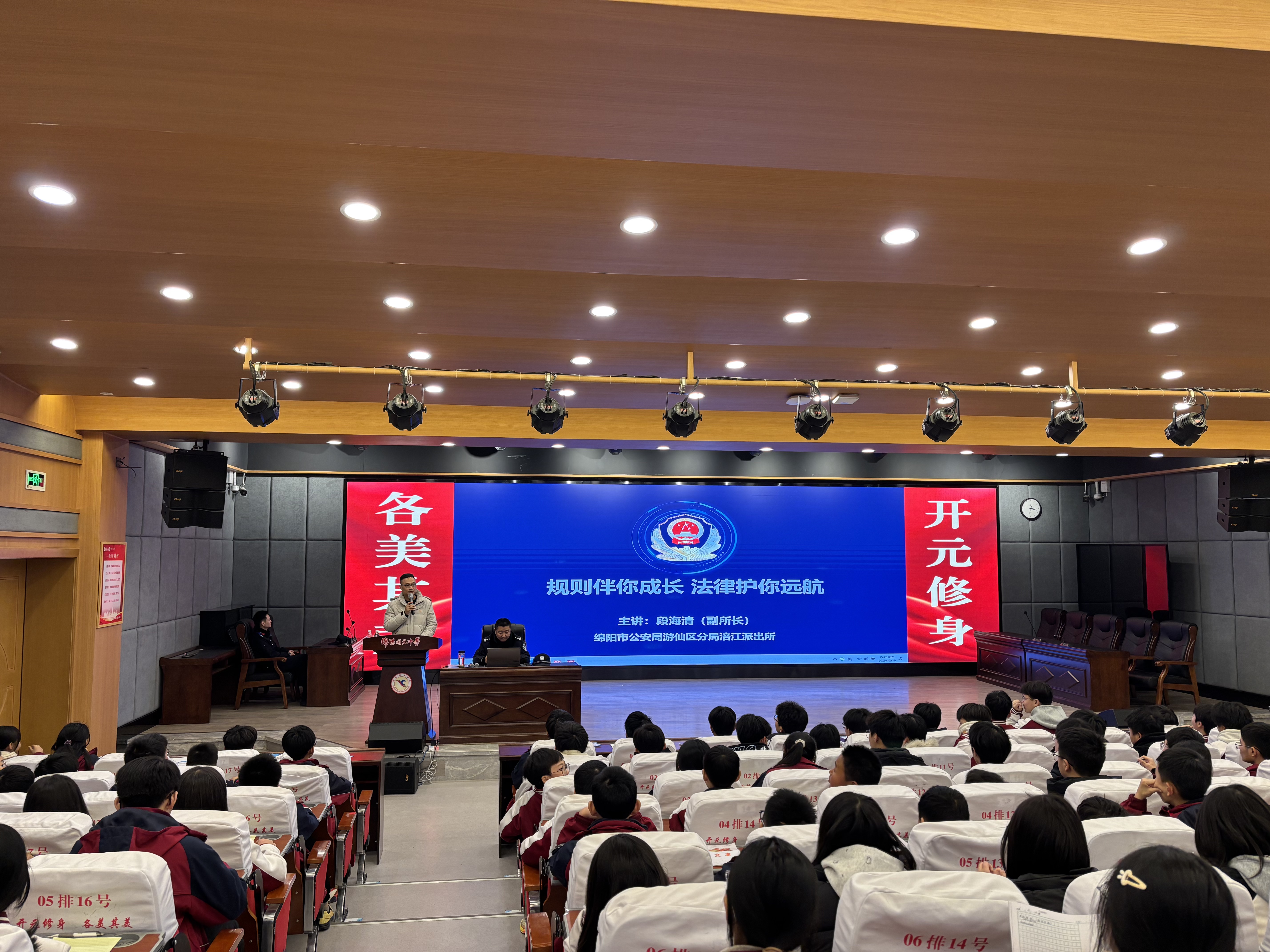 為了進(jìn)一步筑牢師生法治信仰,培育校園法治文化,12月19日下午,綿陽(yáng)市開(kāi)元中學(xué)分兩場(chǎng)成功舉辦了以“規(guī)則伴你成長(zhǎng),法律護(hù)你遠(yuǎn)航”為主題的2025年秋遵法守法專題講座活動(dòng),其中一場(chǎng)設(shè)于該校和美樓六樓學(xué)術(shù)廳,另一場(chǎng)設(shè)于和美樓五樓會(huì)議室?;顒?dòng)由該校政教處主任廖建軍主持,特邀綿陽(yáng)市公安局游仙區(qū)分局涪江派出所副所長(zhǎng)段海清擔(dān)任主講,為全體師生帶來(lái)兩堂深刻而生動(dòng)的法治教育課。