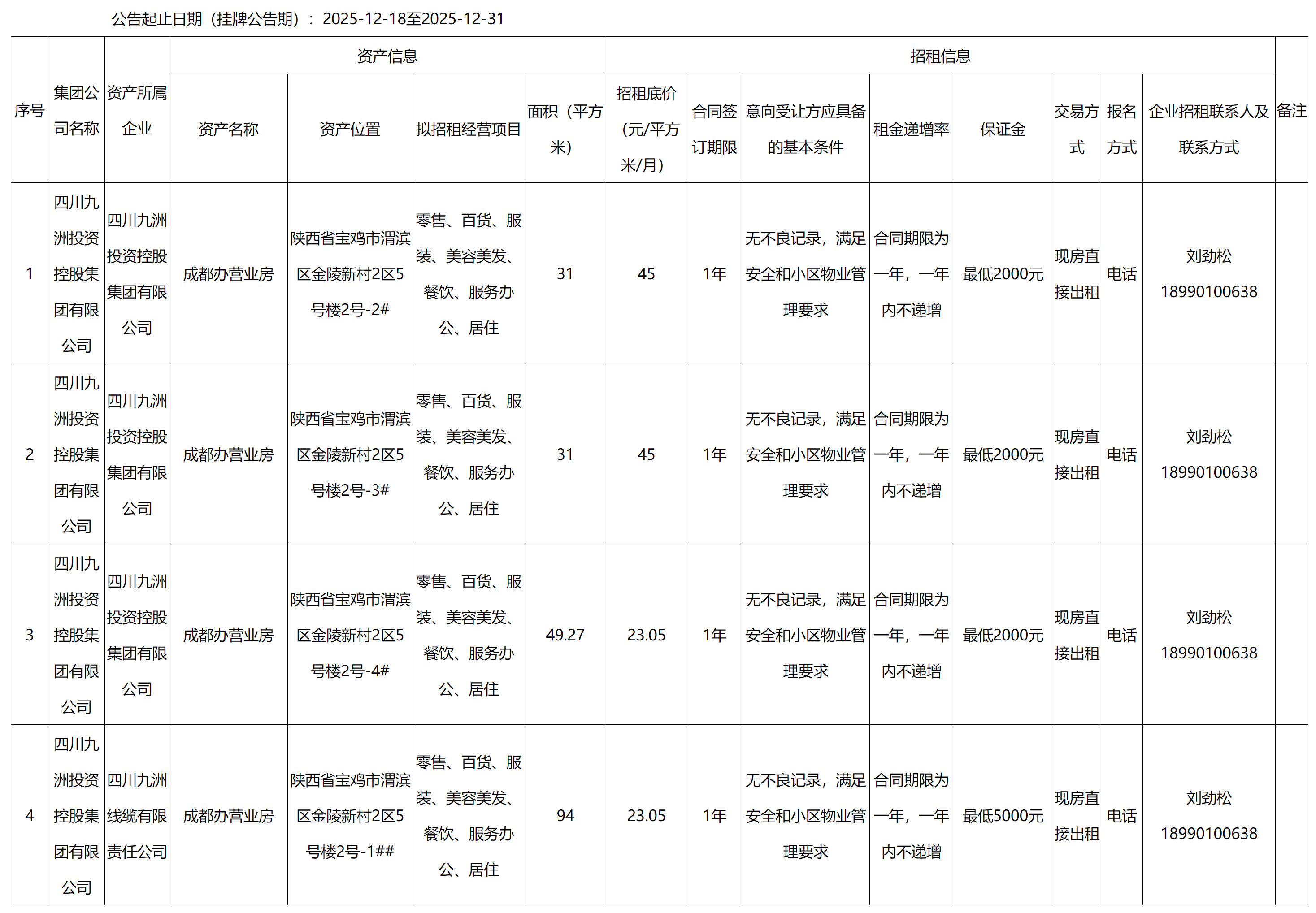 四川九洲線纜有限責(zé)任公司資產(chǎn)出租公告