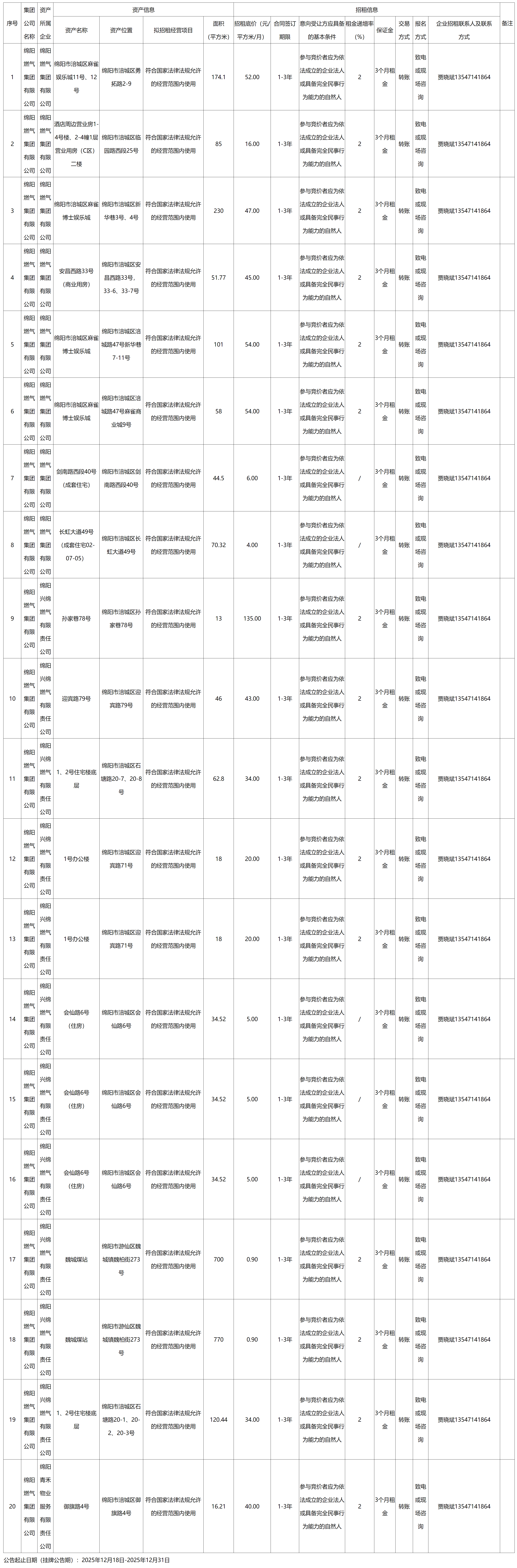 綿陽(yáng)燃?xì)饧瘓F(tuán)有限公司資產(chǎn)出租公告