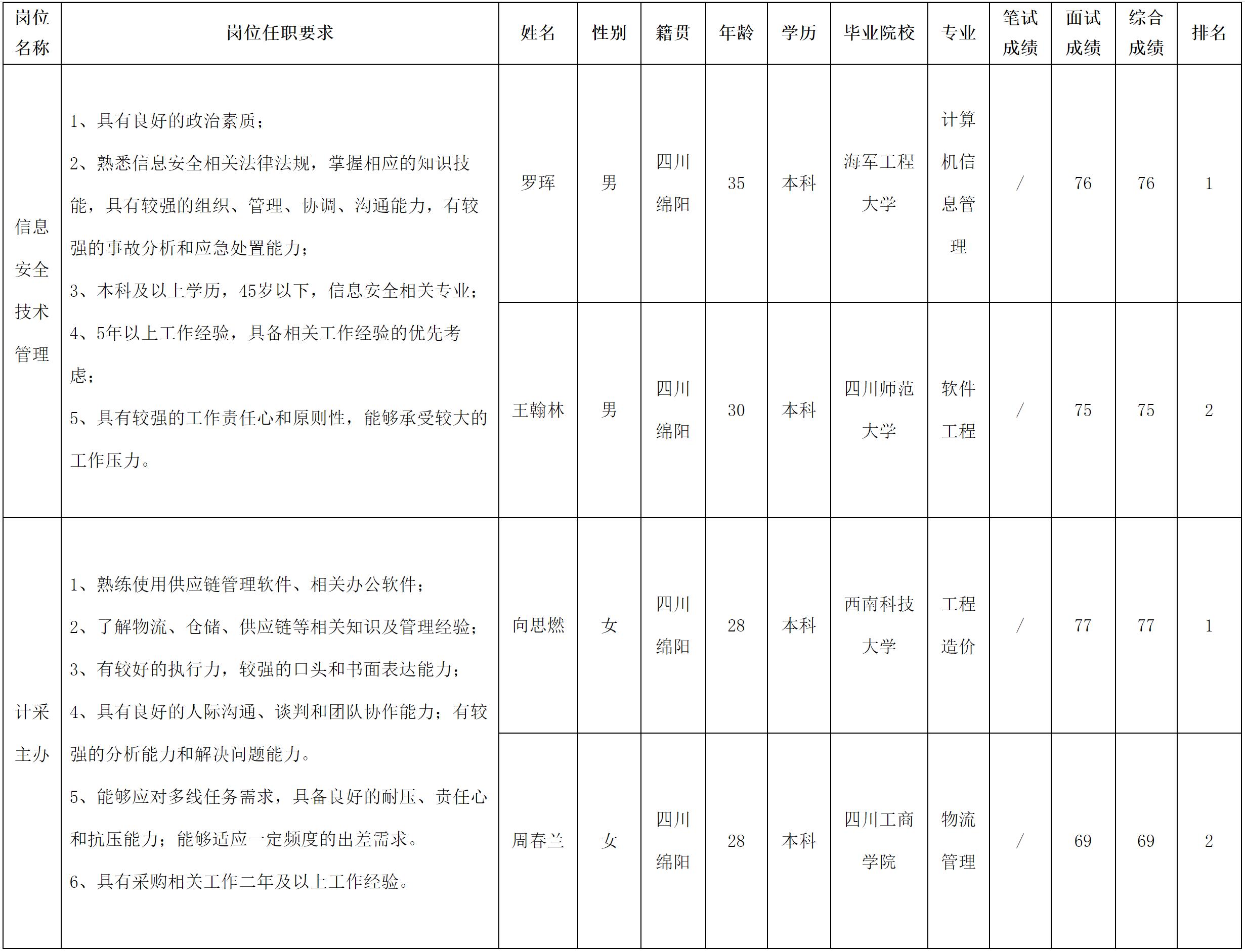 根據(jù)長虹電源公司發(fā)布的招聘公告及招聘相關(guān)規(guī)定,經(jīng)面試等程序,現(xiàn)將面試成績予以公示。