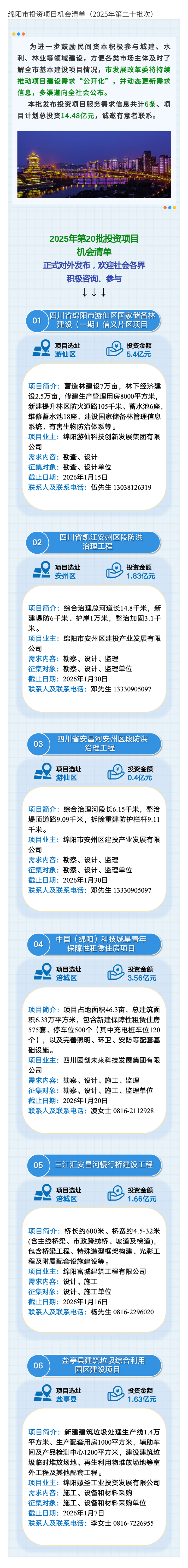 綿陽市投資項(xiàng)目機(jī)會清單(2025年第二十批次)