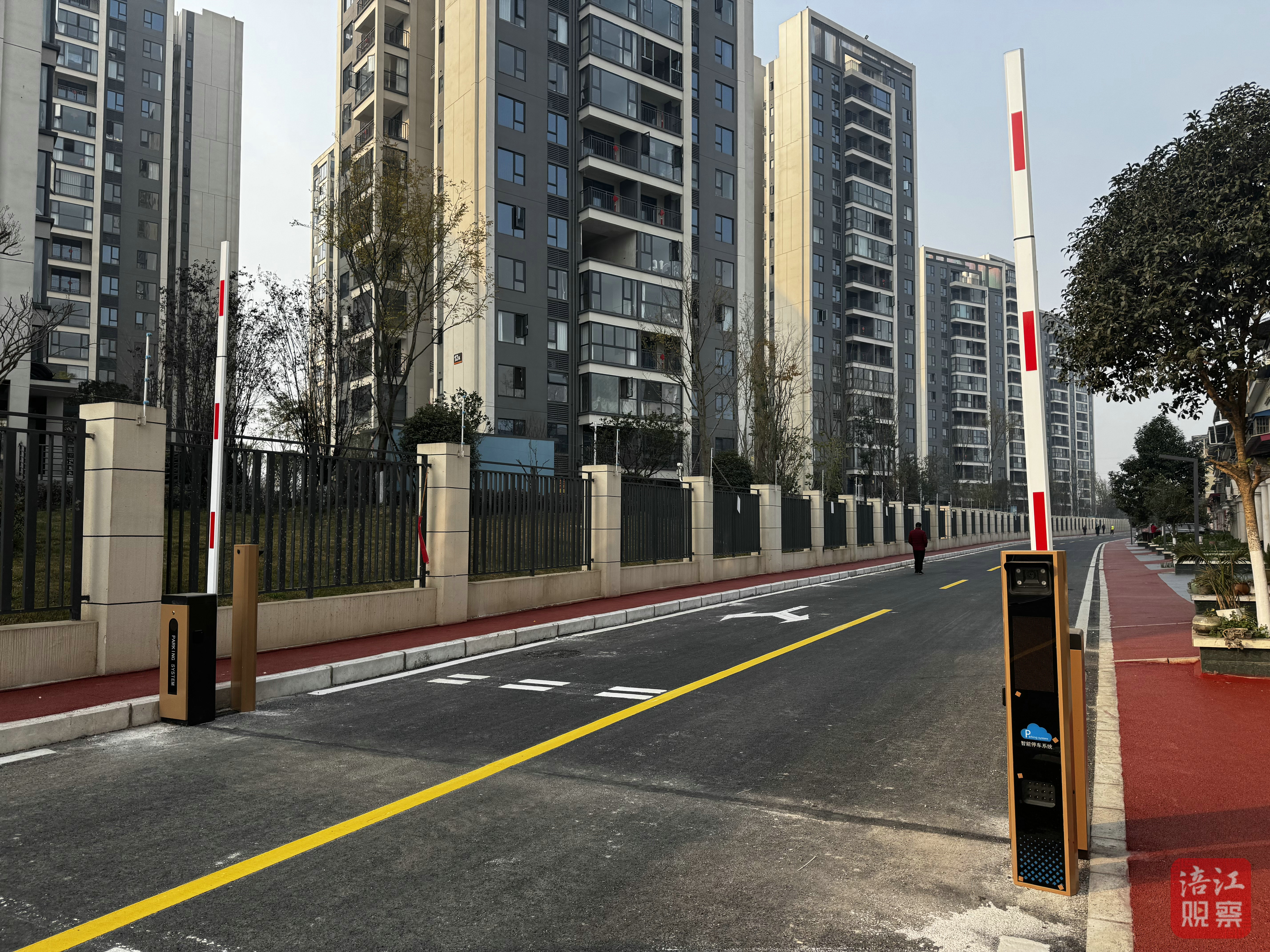 近日,記者來到活觀音社區(qū)與陽光云江樾小區(qū)之間的道路看到,道路上確實已經(jīng)安裝了收費道閘設備,距離小區(qū)其中一個出口約100米,但目前道閘欄桿呈開放狀態(tài),車輛可以自由通行,未對交通造成影響。