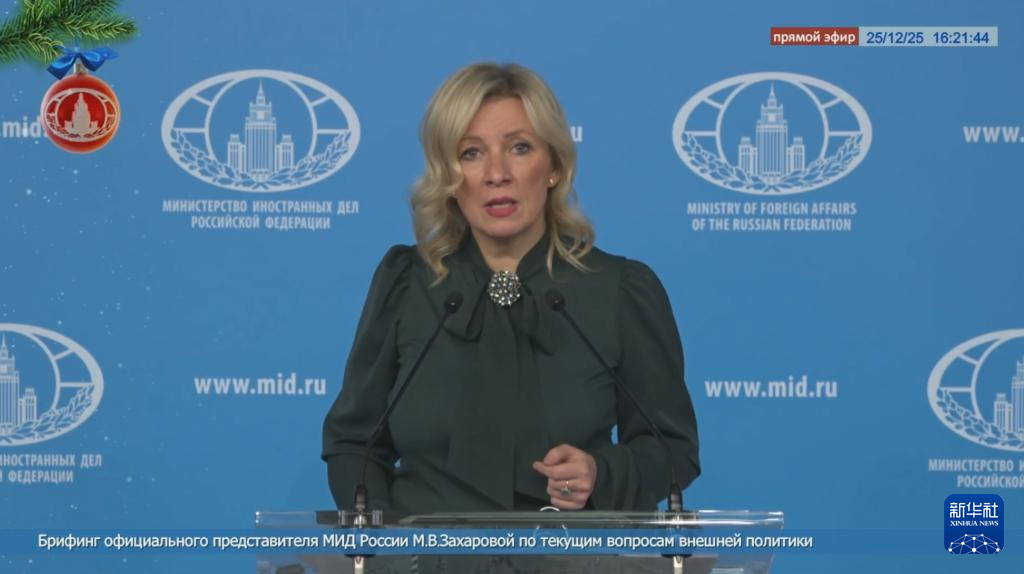 這張視頻截圖顯示,12月25日,俄羅斯外交部發(fā)言人扎哈羅娃在莫斯科舉行的外交部例行記者會(huì)上講話。新華社發(fā)