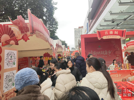 綿陽新聞網(wǎng)訊 12月26日,在綿陽市涪城區(qū)凱德廣場(chǎng)前,歡快的音樂聲中,一場(chǎng)匯聚川渝風(fēng)味的特產(chǎn)盛宴正式開啟——這里正在舉行“雙圈聯(lián)動(dòng) 巴蜀年味”川渝供銷集市年貨主題展銷活動(dòng),川渝各地特產(chǎn)一齊亮相,吸引了不少市民駐足挑選。