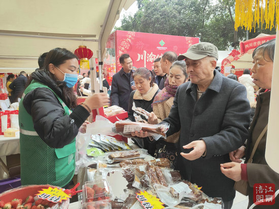 據(jù)市供銷集團(tuán)董事長(zhǎng)李雨峰介紹,此次供銷集市展銷活動(dòng),是川渝地區(qū)供銷社首次多地聯(lián)合辦展,重慶長(zhǎng)壽、北碚、潼南、銅梁、合川與德陽、遂寧、南充、廣元及綿陽9個(gè)縣(市、區(qū))的供銷社一同參與,旨在擴(kuò)內(nèi)需、促消費(fèi),進(jìn)一步深化川渝合作,推動(dòng)雙圈建設(shè)。