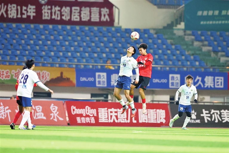 雙方隊(duì)員爭(zhēng)搶頭球。 記者 陳冬冬 攝