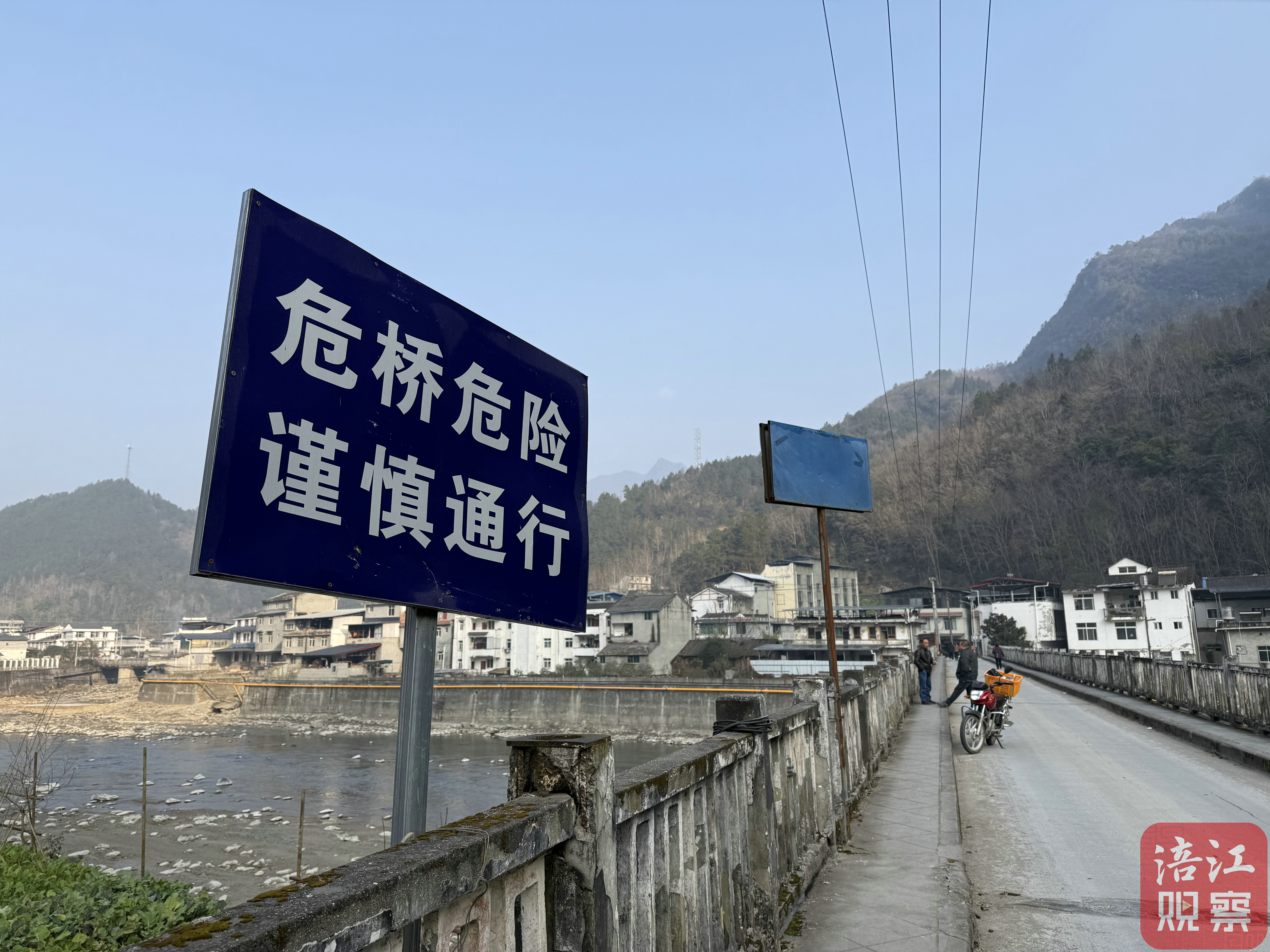 12月29日,記者前往實地探訪看到,該橋橫跨河流,長約80米,橋面破損嚴重,部分護欄缺失,橋頭兩側(cè)醒目地放置著“危橋危險 謹慎通行”“前方危橋 貨車禁行”等警示標識。“橋上有車的時候,我們就趕緊跑到橋兩頭來,擔心突然斷了,希望這個橋能快點修好,讓大家能安心走。”采訪中,不少村民向記者表達了擔憂。