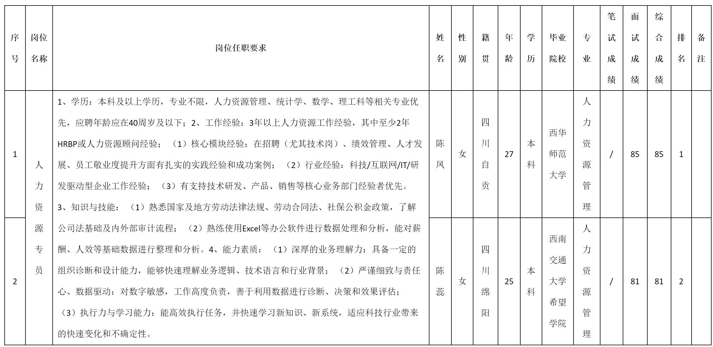 四川九洲投資控股集團有限公司軟件與數(shù)據(jù)智能軍團關(guān)于招聘人力資源專員測試成績的公示