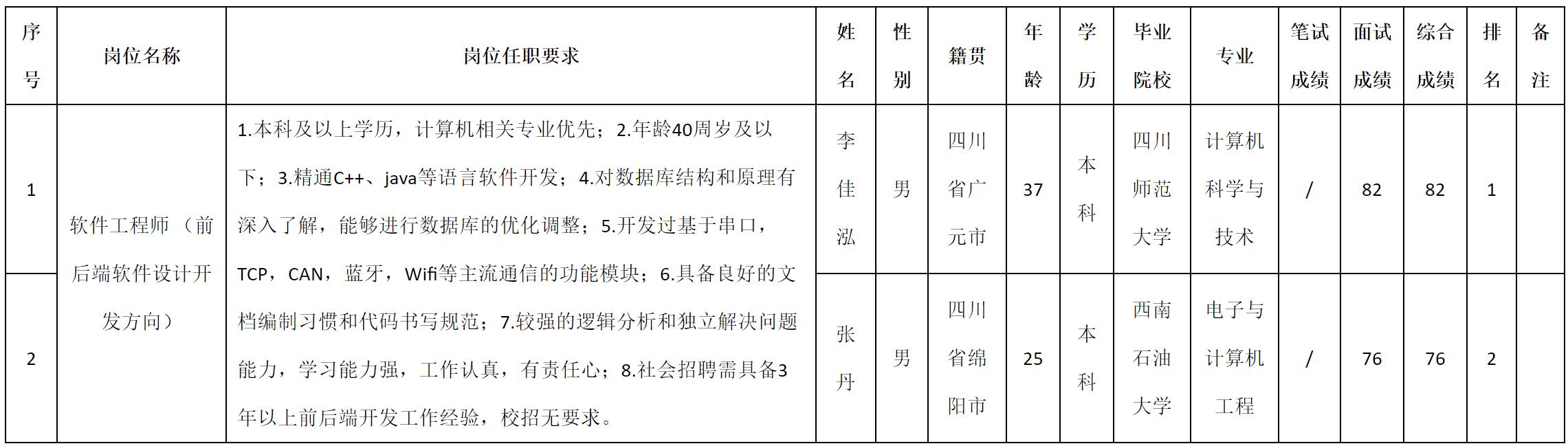 根據(jù)四川九洲光電科技股份有限公司發(fā)布的招聘公告及招聘相關(guān)規(guī)定,現(xiàn)將測(cè)試成績(jī)予以公示。