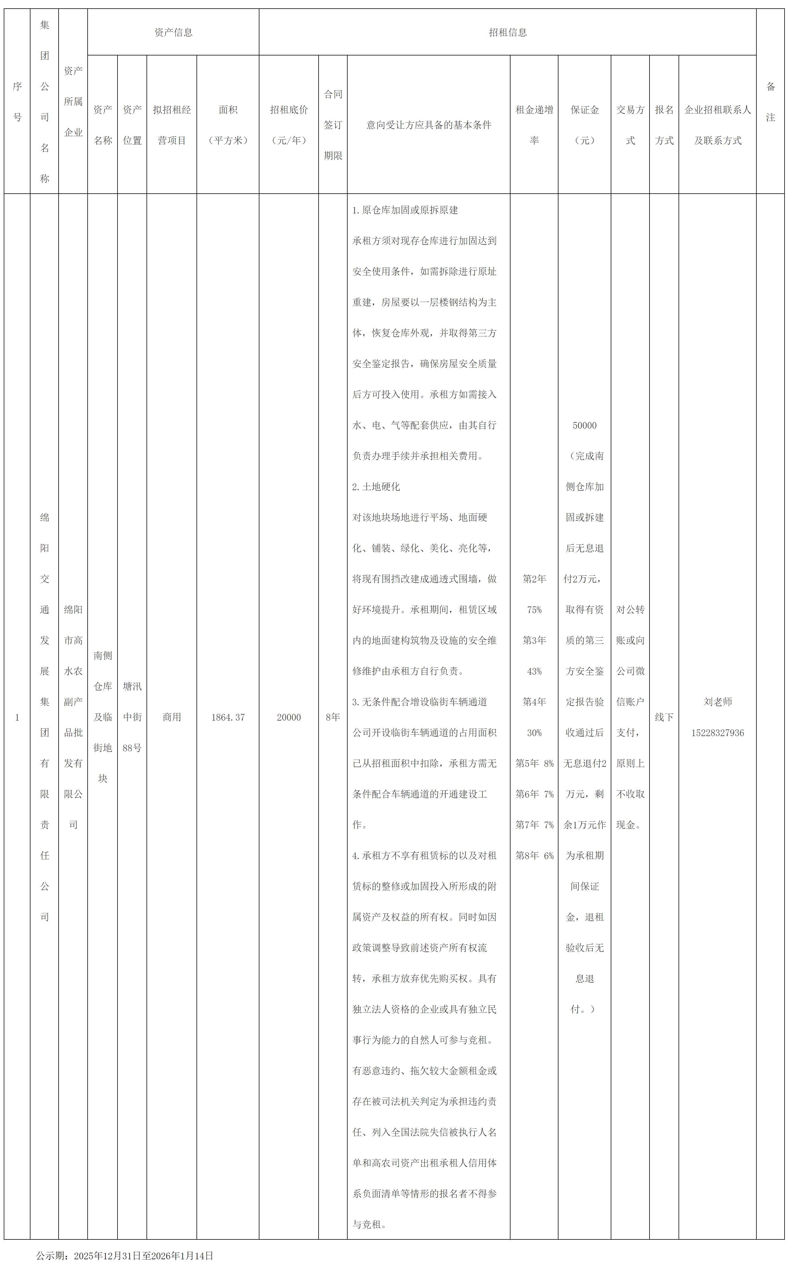 綿陽市高水農(nóng)副產(chǎn)品批發(fā)有限公司資產(chǎn)出租公告
