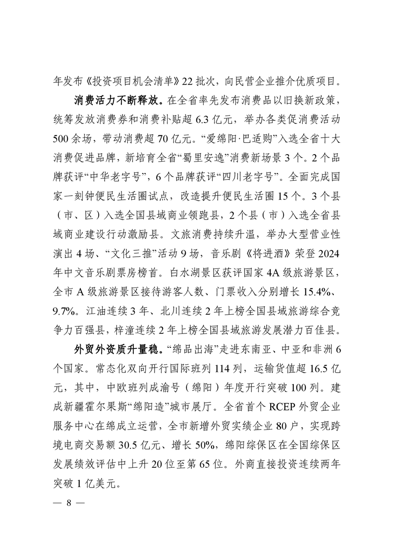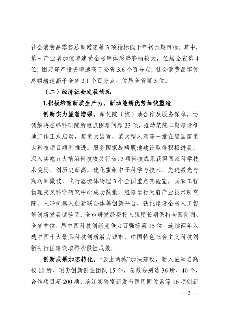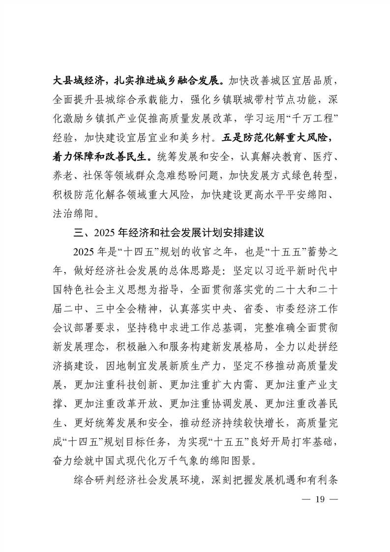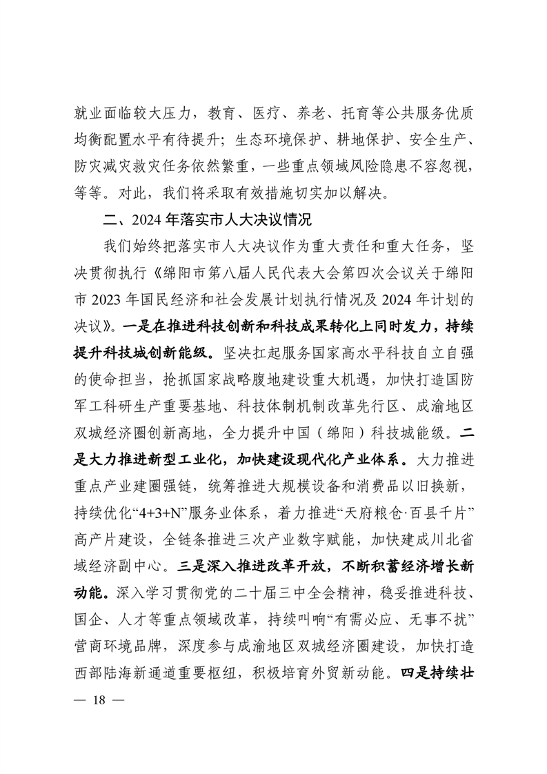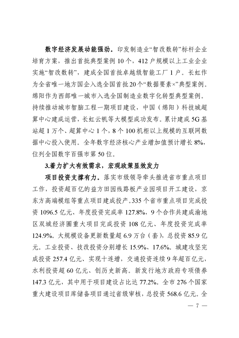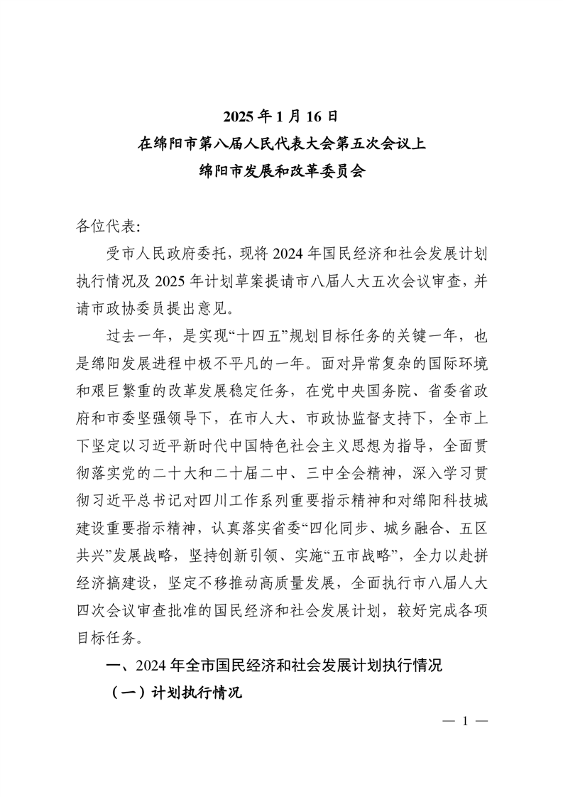 關(guān)于綿陽市2024年國民經(jīng)濟(jì)和社會發(fā)展計劃 執(zhí)行情況及2025年計劃草案的報告(書面)