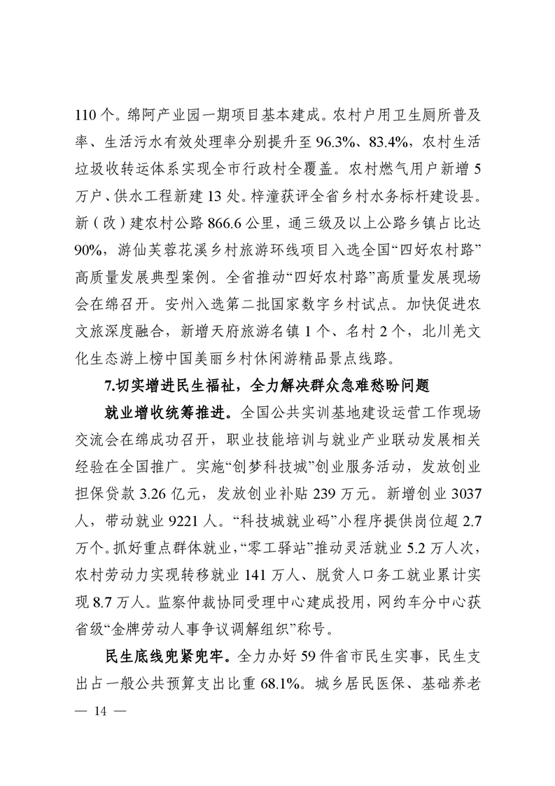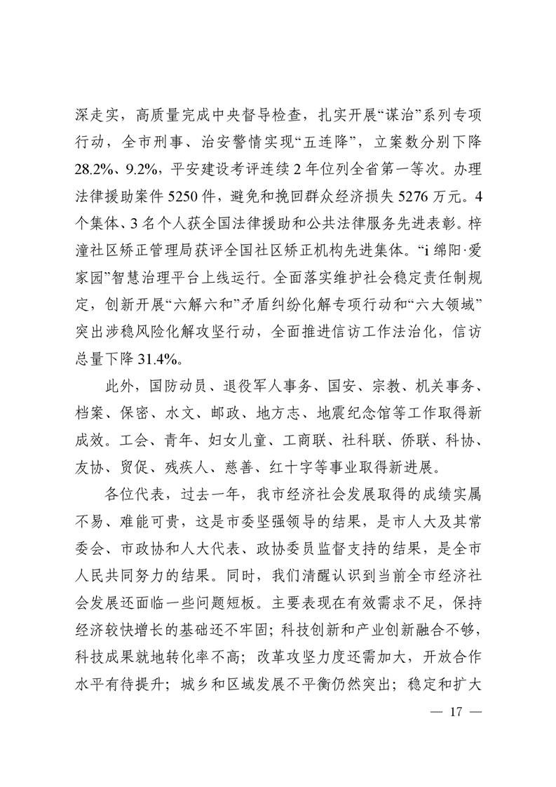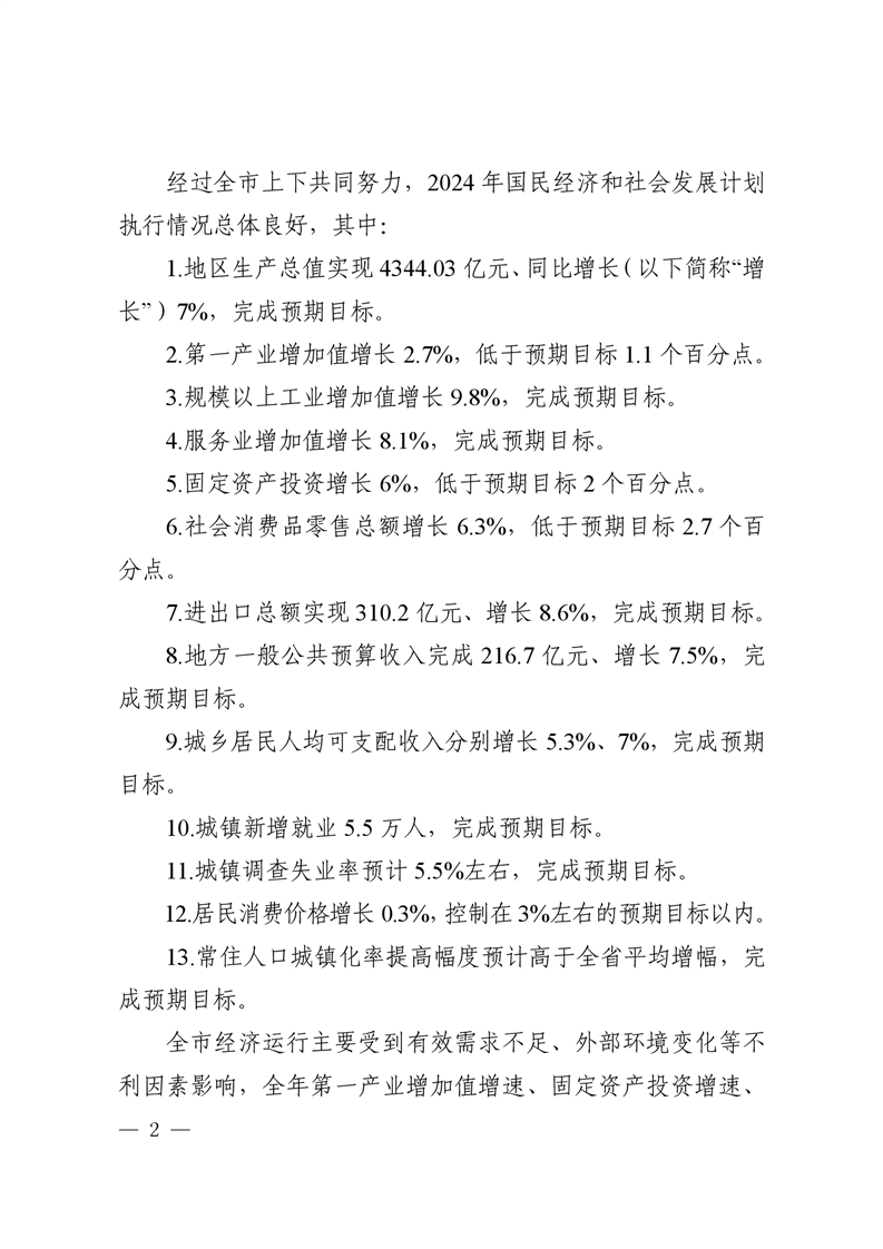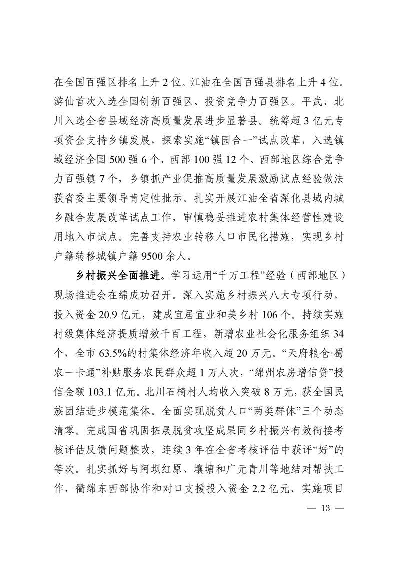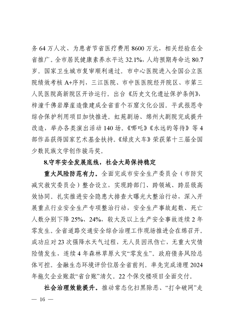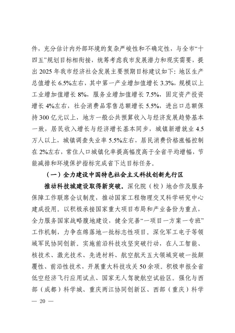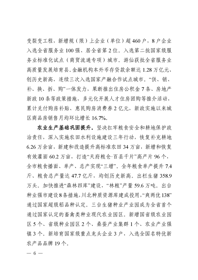 關(guān)于綿陽市2024年國民經(jīng)濟(jì)和社會發(fā)展計劃 執(zhí)行情況及2025年計劃草案的報告(書面)