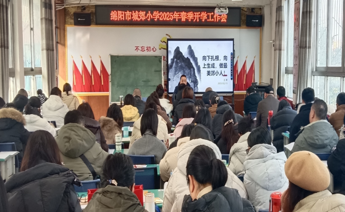 “煥彩華堂添喜氣,新程奮進創(chuàng)輝煌”。為了謀劃2025年春季學期各項工作,2月15日,綿陽市城郊小學召開了以“向下扎根 向上生長 做最美郊小人”為主題的2025年春季學期開學工作會。