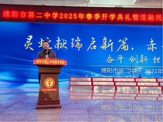 綿陽市第二中學(xué)黨委副書記、校長杜裕在致辭中回顧了過去一年的奮斗與收獲,展望了新學(xué)期的挑戰(zhàn)與機(jī)遇。他鼓勵(lì)同學(xué)們要志存高遠(yuǎn),心懷夢(mèng)想;腳踏實(shí)地,苦學(xué)真學(xué);堅(jiān)韌不拔,持之以恒;團(tuán)結(jié)協(xié)作,比肩同進(jìn)。他鼓勵(lì)同學(xué)們?cè)趯W(xué)習(xí)中保持堅(jiān)韌不拔的精神,像哪吒一樣無畏,像DeepSeek般睿智,像宇樹工程師般執(zhí)著,在求知中拓寬認(rèn)知邊界,在實(shí)踐中打磨匠人精神。