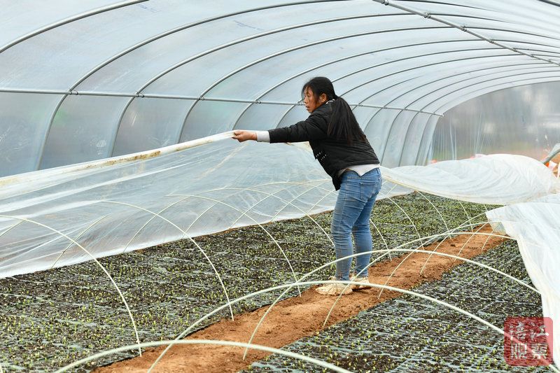 在不遠(yuǎn)處的兩座大棚內(nèi),瓜農(nóng)夫妻倆正細(xì)心地為剛破土而出的幼苗淋水。今年,他們計(jì)劃種植70畝西瓜,十幾天后將雇傭更多的人來(lái)栽苗。