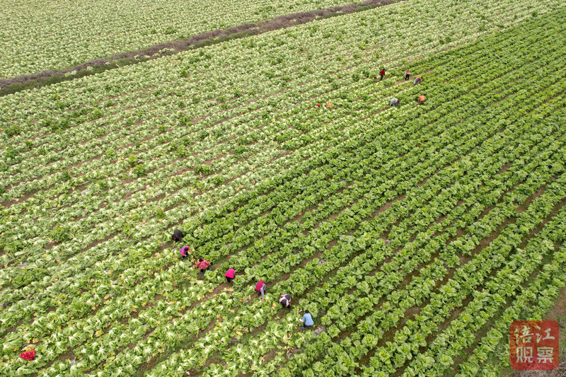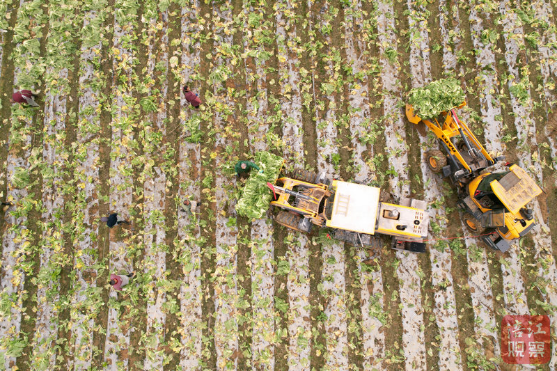 在芙蓉溪畔的勝黎村,20多位農(nóng)民正在搶收近百畝地的青菜。2臺(tái)裝載機(jī)及時(shí)將砍好的青菜裝進(jìn)路邊的大貨車(chē),1臺(tái)大型農(nóng)耕機(jī)在被清空的菜地里來(lái)回穿梭……