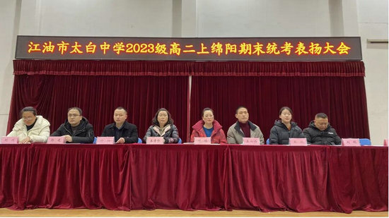 綿陽新聞網訊 為了表揚先進,樹立榜樣,2月24日,江油市太白中學高2023級在體育館舉行了以“鯤鵬振翅凌萬里 騏驥奮蹄啟新程”為主題的高二上期綿陽期末考試成績表揚大會。本次會議由年級主任汪麗主持,該校黨委委員、副校長何璠老師,該校教學督導師、年級分管王孝珍老師,教導處主任、年級主管冷燦老師及2023級全體師生齊聚一堂,共赴這場青春與榮耀的盛會。