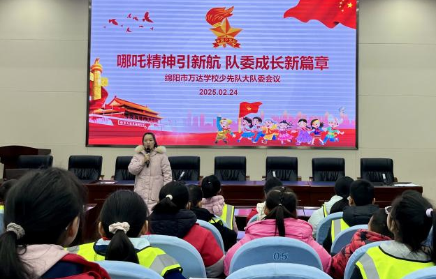 為了做好新學(xué)期少先隊(duì)工作,提高少先隊(duì)大隊(duì)委的團(tuán)隊(duì)協(xié)作能力,加強(qiáng)和規(guī)范少先隊(duì)隊(duì)伍建設(shè),充分發(fā)揮隊(duì)員的主動性和積極性,明確新學(xué)期的工作職責(zé)與目標(biāo)。2月24日上午,綿陽市萬達(dá)學(xué)校開展了以“哪吒精神引新航 隊(duì)委成長新篇章”為主題的2025年春季學(xué)期少先隊(duì)大隊(duì)委會議。此次會議由大隊(duì)輔導(dǎo)員賈麗老師主持,分管副校長趙靜、政教主任王香梅出席會議。