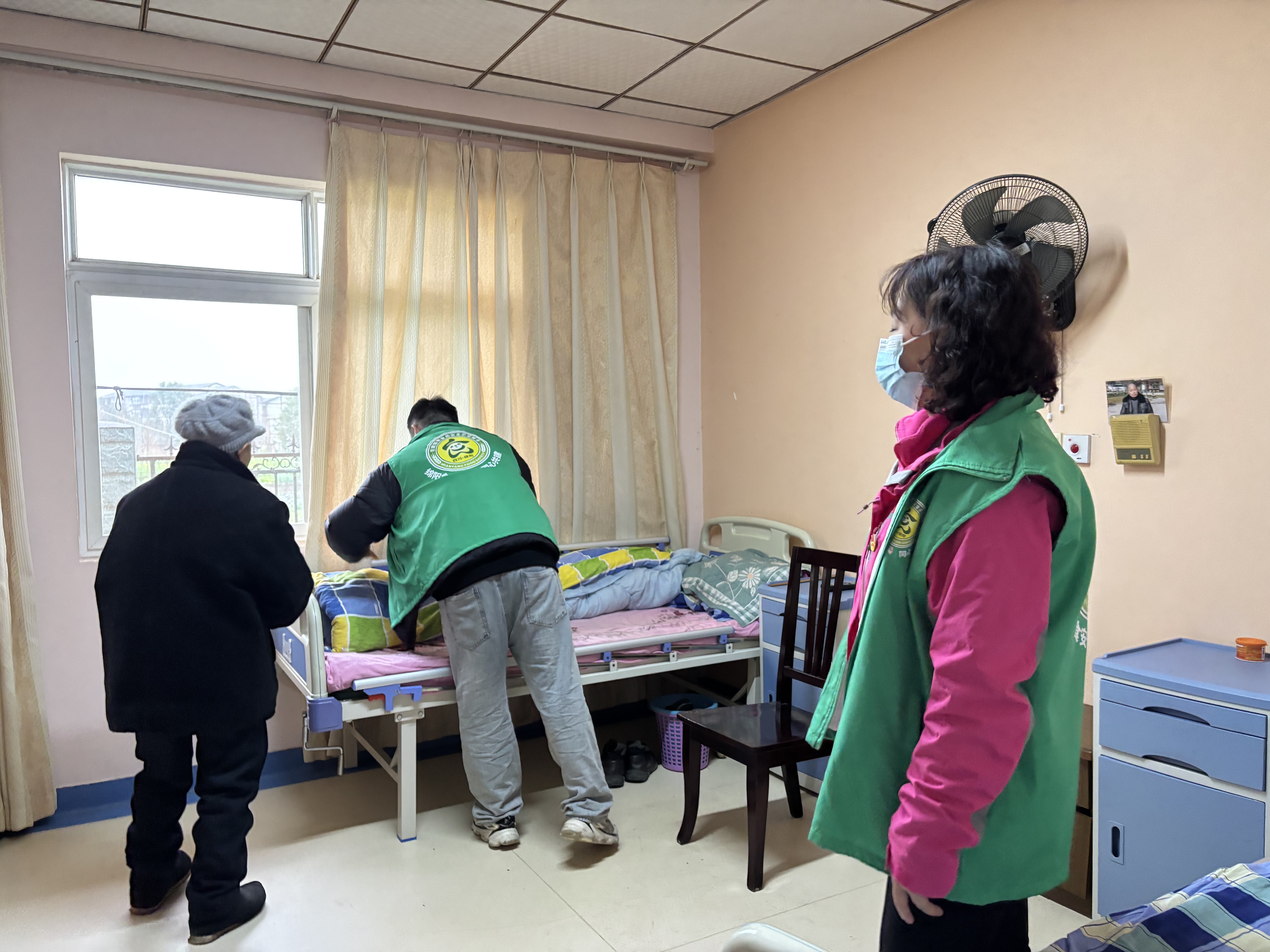 上午9時(shí),黨團(tuán)員教師分組走進(jìn)養(yǎng)老院活動(dòng)室和老人們的生活區(qū),傾聽他們的生活故事,志愿者們還為老人們整理房間,通風(fēng)擦拭,為老人們提供了一個(gè)干凈整潔的居住環(huán)境。
