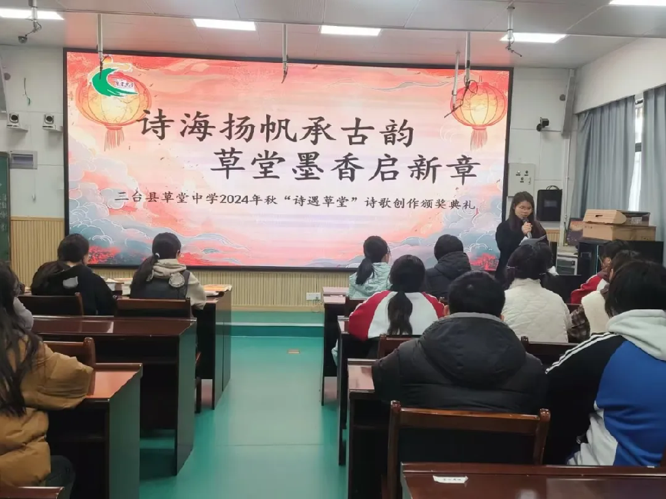 2月28日,三臺縣草堂中學在學校錄播室舉行了以“詩海揚帆承古韻,草堂墨香啟新章”為主題的2025年春頒獎典禮。