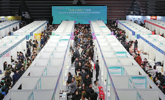 2025年2月14日,“樂業(yè)上海優(yōu)+”行動(dòng)——2025年上海市春季促進(jìn)就業(yè)綜合性大型招聘會(huì)在上海體育館舉行。(新華社記者 劉穎 攝)