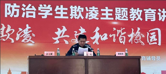講座伊始,趙歡以“防治學(xué)生霸凌 ?共建和諧校園”為主題,現(xiàn)場結(jié)合《未成年人保護法》,用通俗易懂的語言向?qū)W生講解校園學(xué)生欺凌的定義、表現(xiàn)形式及法律后果。