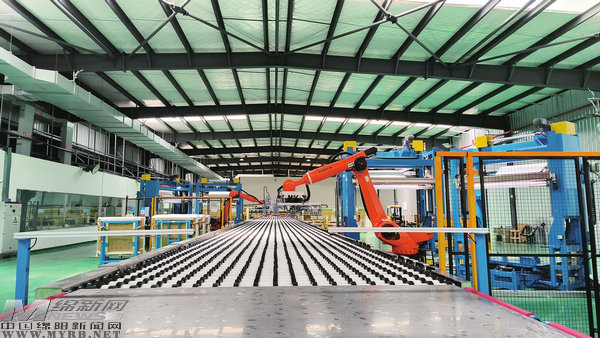 近日,記者走進(jìn)四川虹科創(chuàng)新科技有限公司的生產(chǎn)車間,整潔清爽的廠區(qū)環(huán)境映入眼簾,伴隨著機(jī)器輕微的“嗡嗡”聲,智能化生產(chǎn)線正高效運(yùn)轉(zhuǎn),靈巧的智能機(jī)器人揮舞著機(jī)械“手臂”,每天都要精準(zhǔn)完成3萬余平方米玻璃的上片、下片任務(wù)。