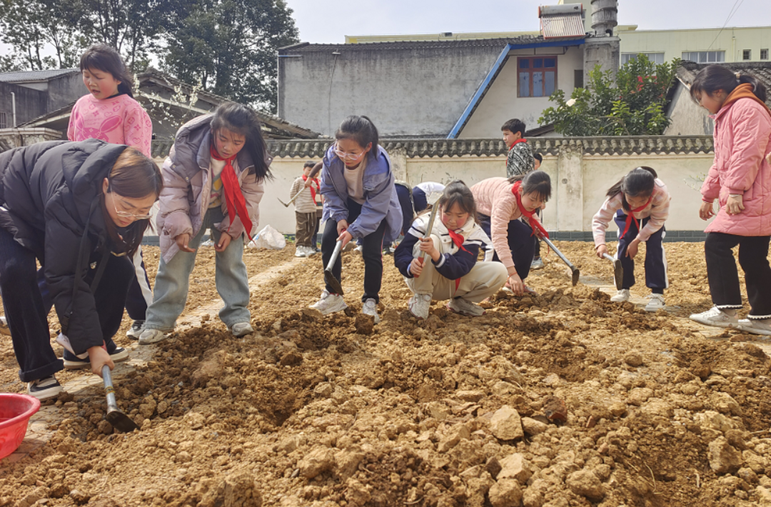 該校園內(nèi)的勞動基地?zé)狒[非凡,四年級全體學(xué)生在老師的帶領(lǐng)下開展辣椒苗種植活動,將勞動教育與實(shí)踐深度融合,為校園增添一抹生機(jī)綠意。