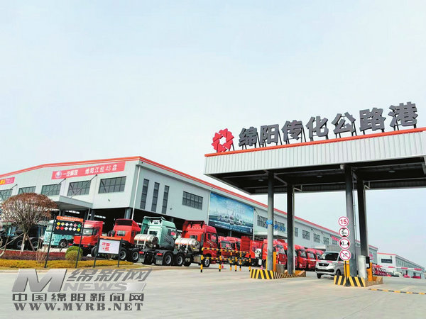 另一邊,同樣位于四川綿陽工業(yè)園西區(qū)的傳化智慧物流樞紐項目產業(yè)園內,車來車往一派繁忙景象,道路上滿載貨物的車輛奔涌向前。
