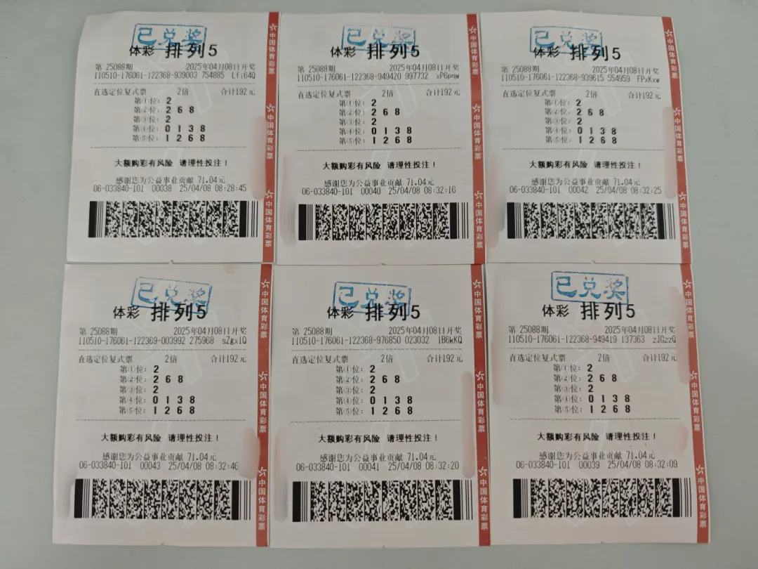 4月8日,體彩排列5游戲第25088期開獎,開獎號碼為:22231。來自德陽市什邡市的幸運購彩者憑借6張直選定位復式倍投票攬下12注排列5一等獎,獎金合計120萬元!