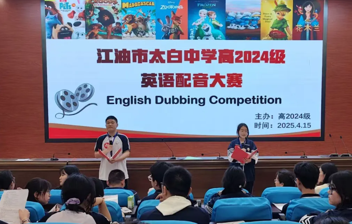 綿陽新聞網(wǎng)訊 2025年4月15日傍晚,江油市太白中學(xué)高2024級舉行了以“English Dubbing Competition”為主題的活動。