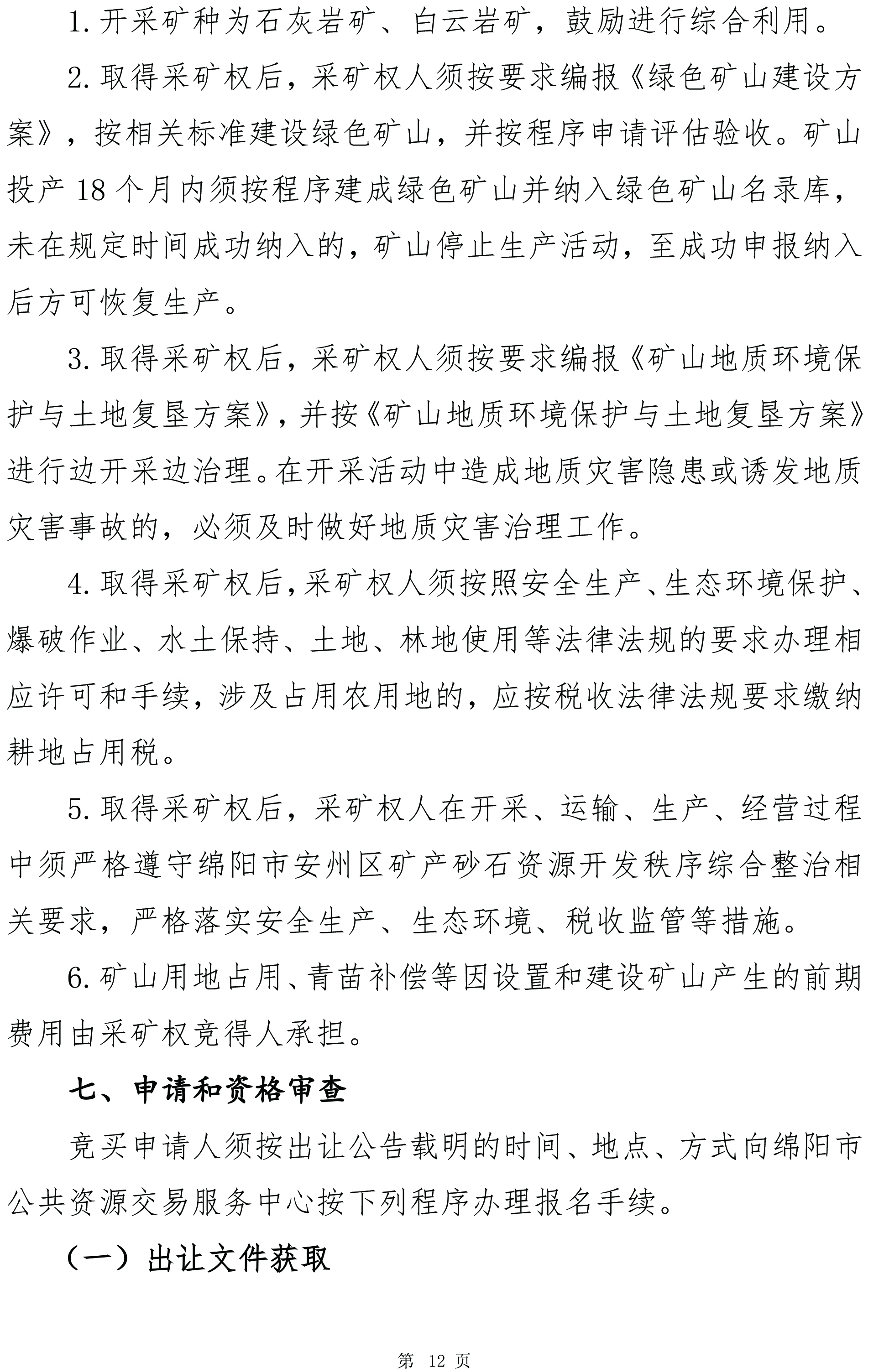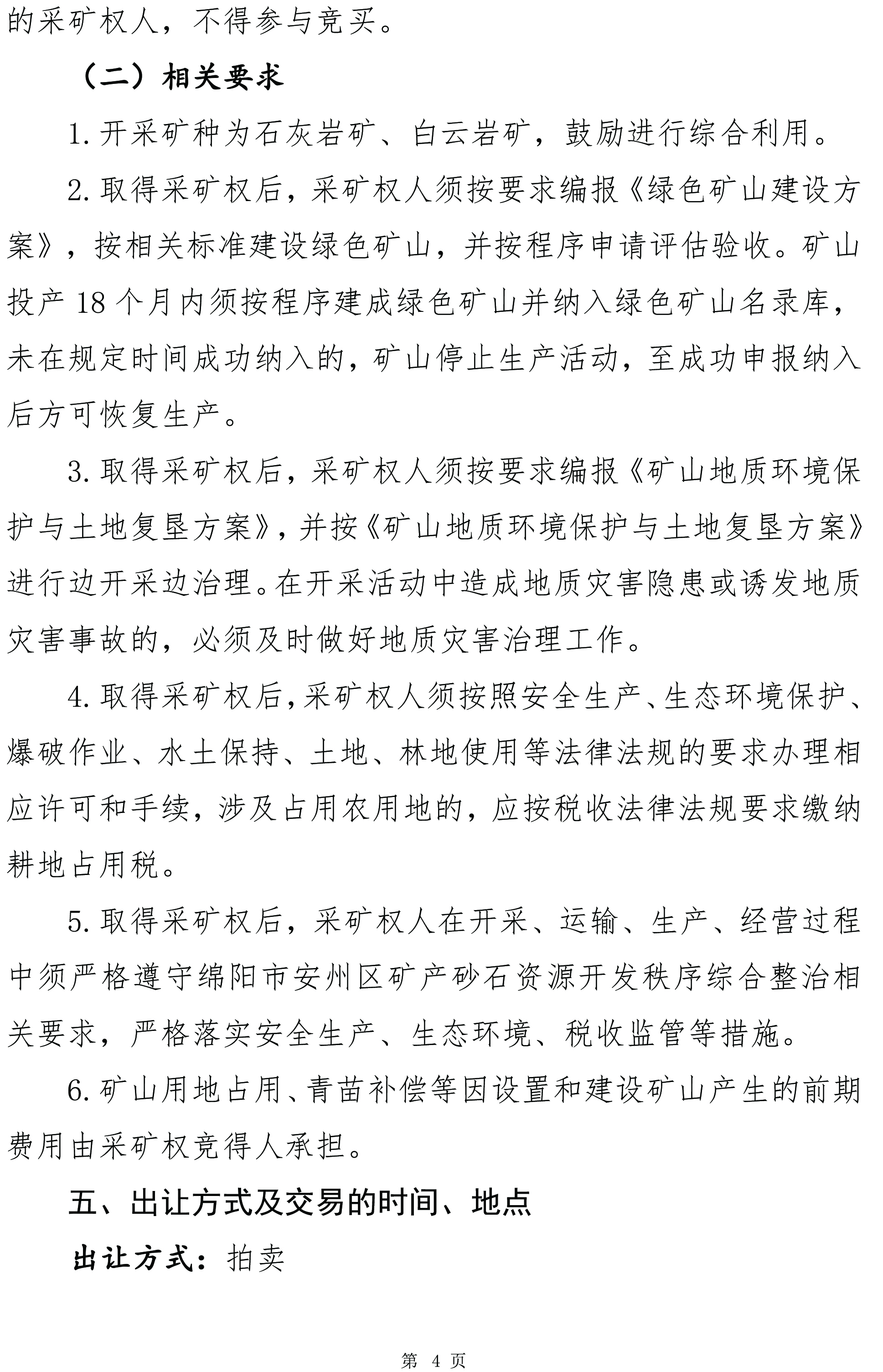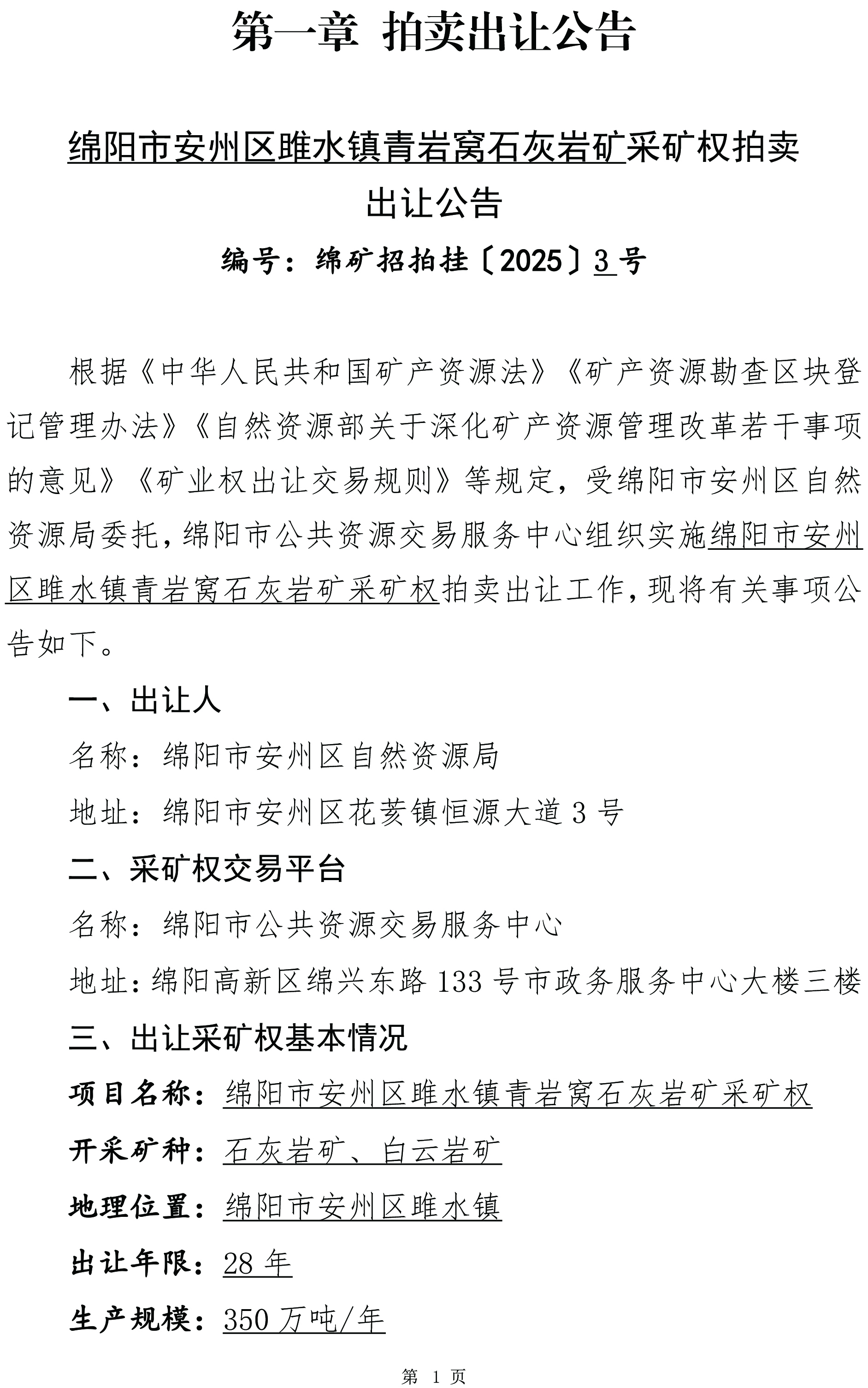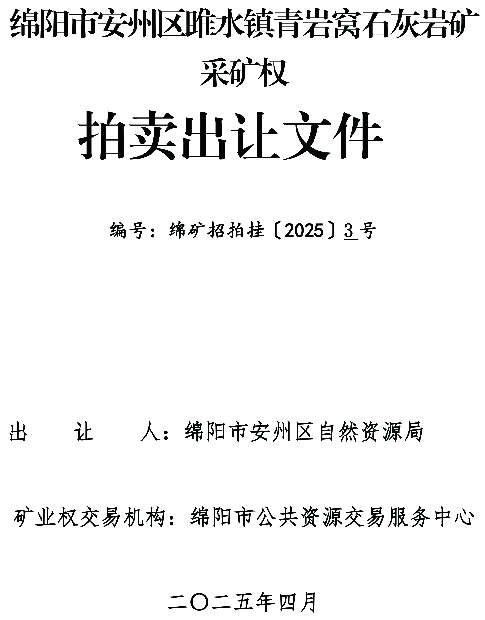 綿陽市安州區(qū)雎水鎮(zhèn)青巖窩石灰?guī)r礦拍賣出讓文件(編號:綿礦招拍掛〔2025〕3號)