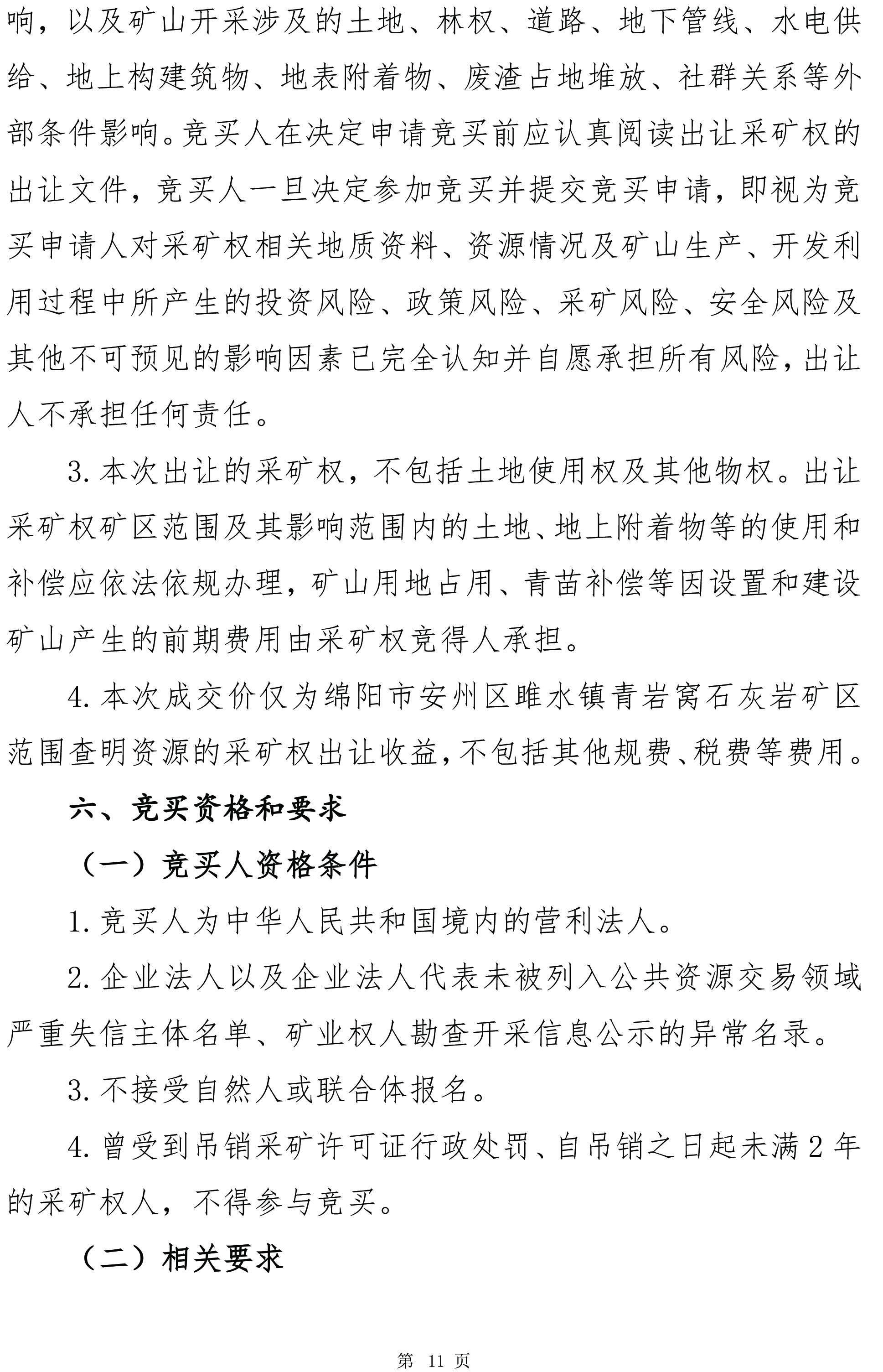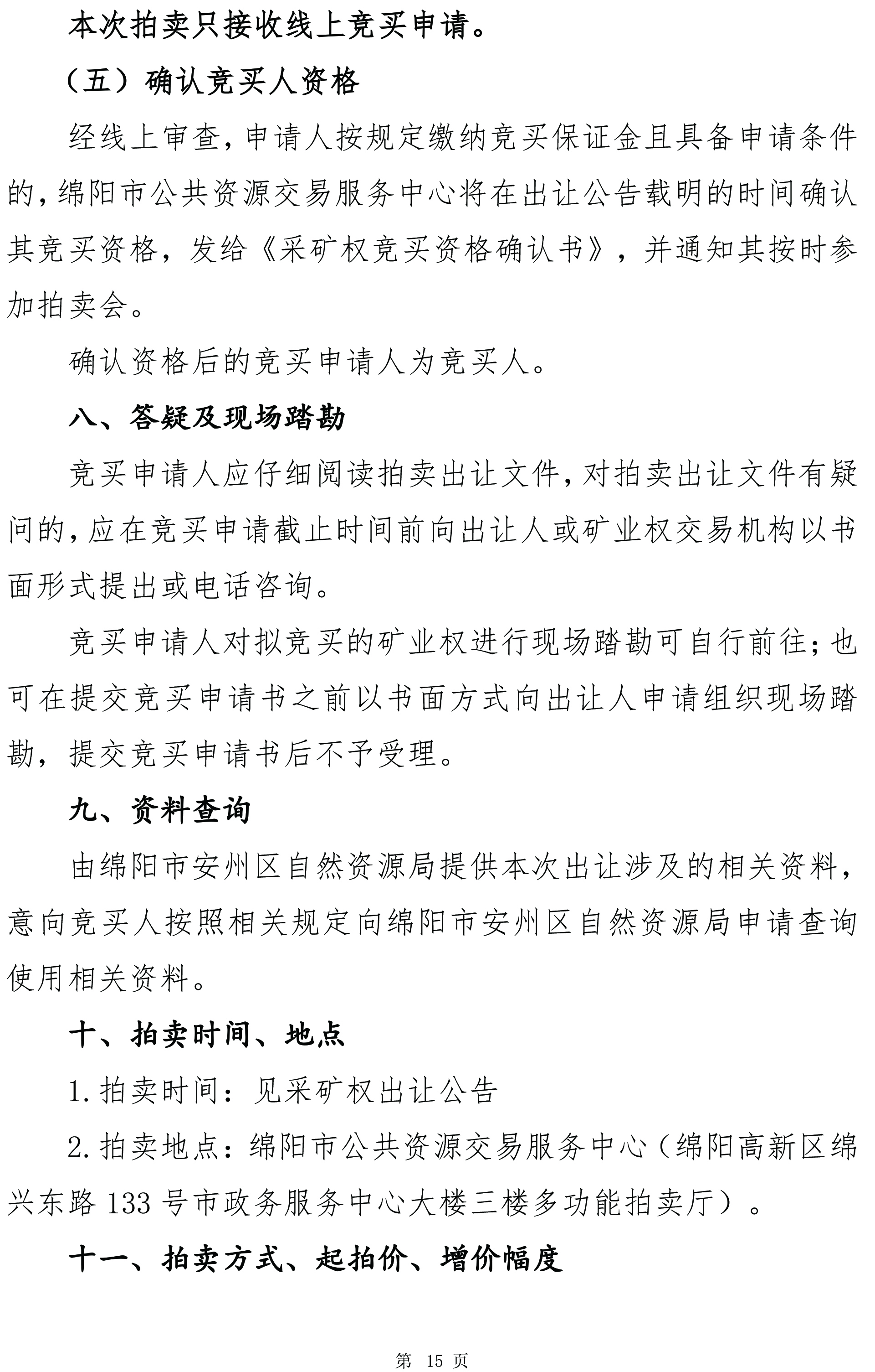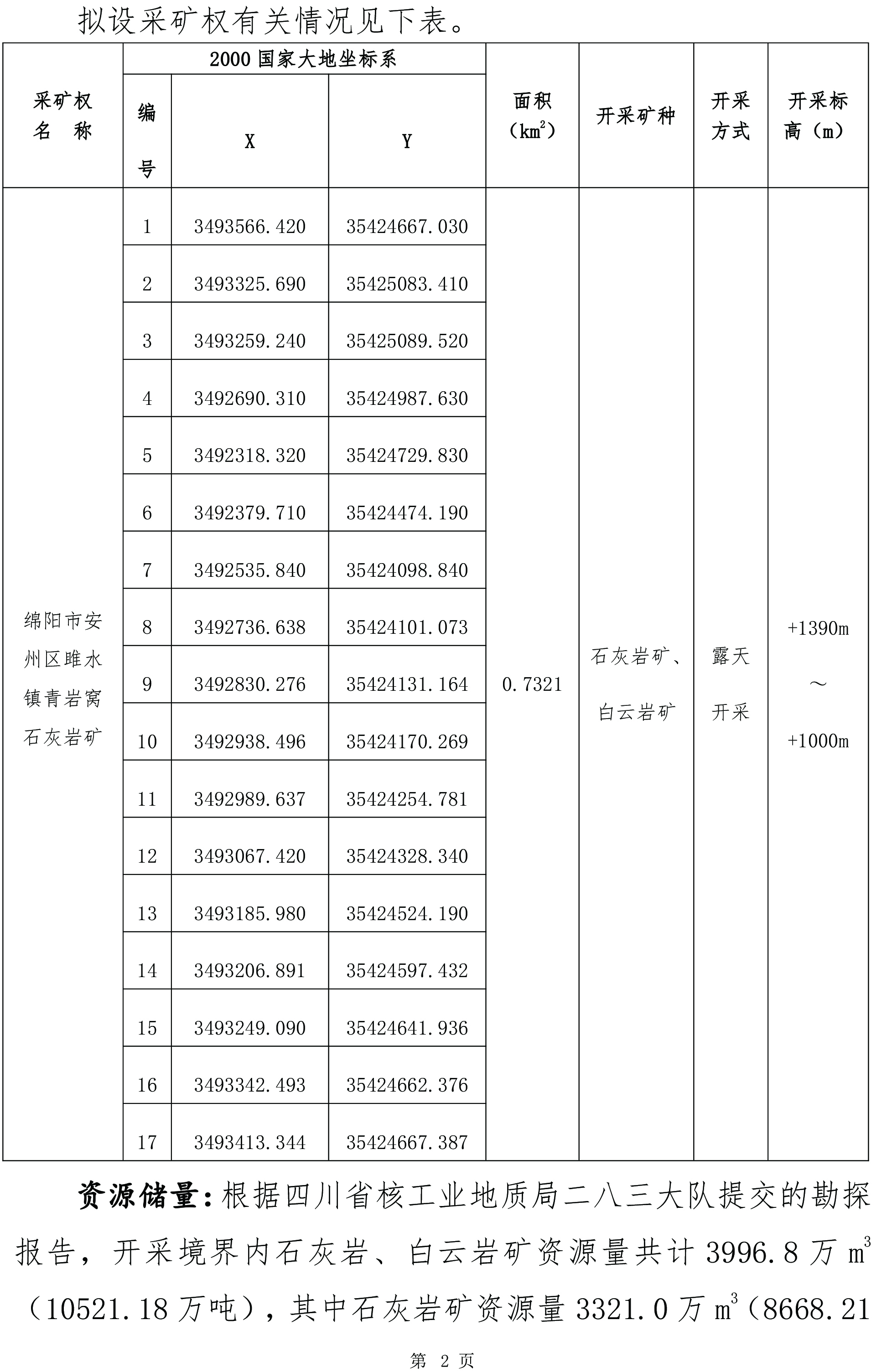 綿陽市安州區(qū)雎水鎮(zhèn)青巖窩石灰?guī)r礦拍賣出讓文件(編號:綿礦招拍掛〔2025〕3號)